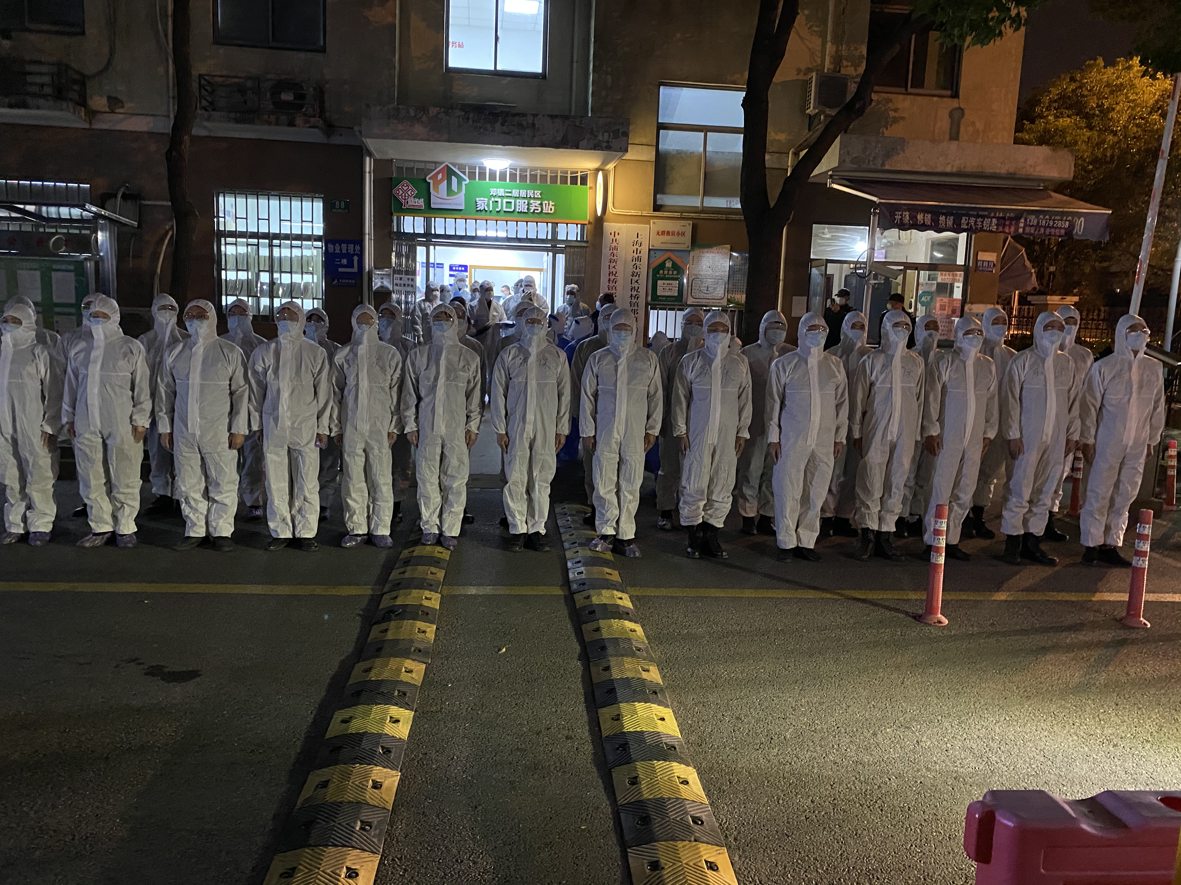 11月份的上海,氣溫驟降,特別是在深夜和凌晨,氣溫降到了最低點,凍得隊員們直打哆嗦,但隊員們沒有絲毫松懈,不懼危險、不怕辛苦,堅守在小區(qū)的各個出入口。