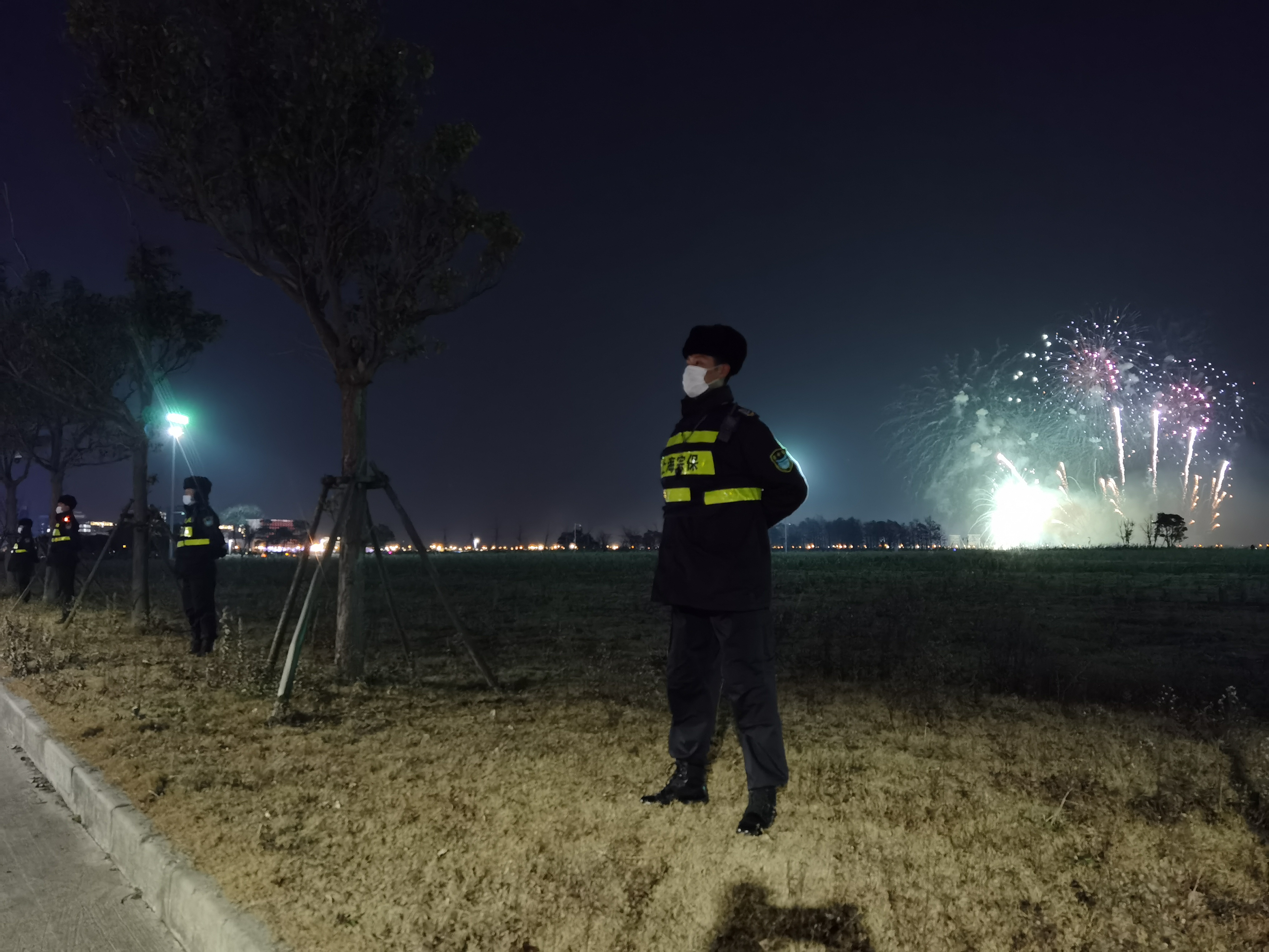 宗保保安公司參與煙花秀現(xiàn)場安全保衛(wèi)任務(wù)。宗保隊(duì)員們著裝嚴(yán)整、精神抖擻,守護(hù)著滴水湖周邊近16平方公里的區(qū)域。