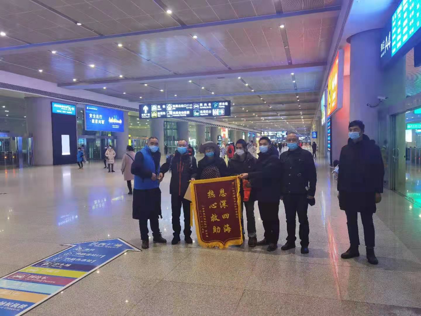1月7日,成都救助站工作人員將一面繡有“恩深似海 熱心救助”的錦旗送到了宗保公司駐周浦市容項目,感謝他們護送流浪乞討男子返鄉(xiāng)的愛心行動。