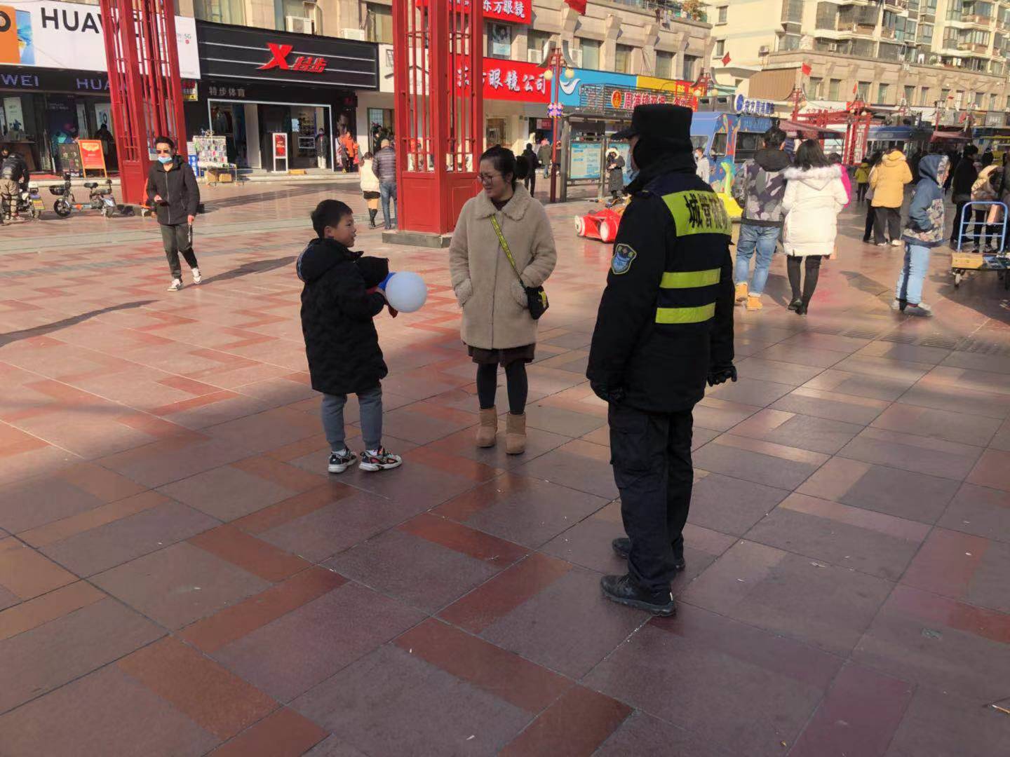 在原地等了10多分鐘后,一名女子從步行街里急匆匆地走過來,邊走邊說孩子是她的,小男孩也急切地叫著媽媽,母子互認。該女子再三向隊員表示感謝,隊員說這是應(yīng)該做的,隨后回到崗位繼續(xù)巡邏。