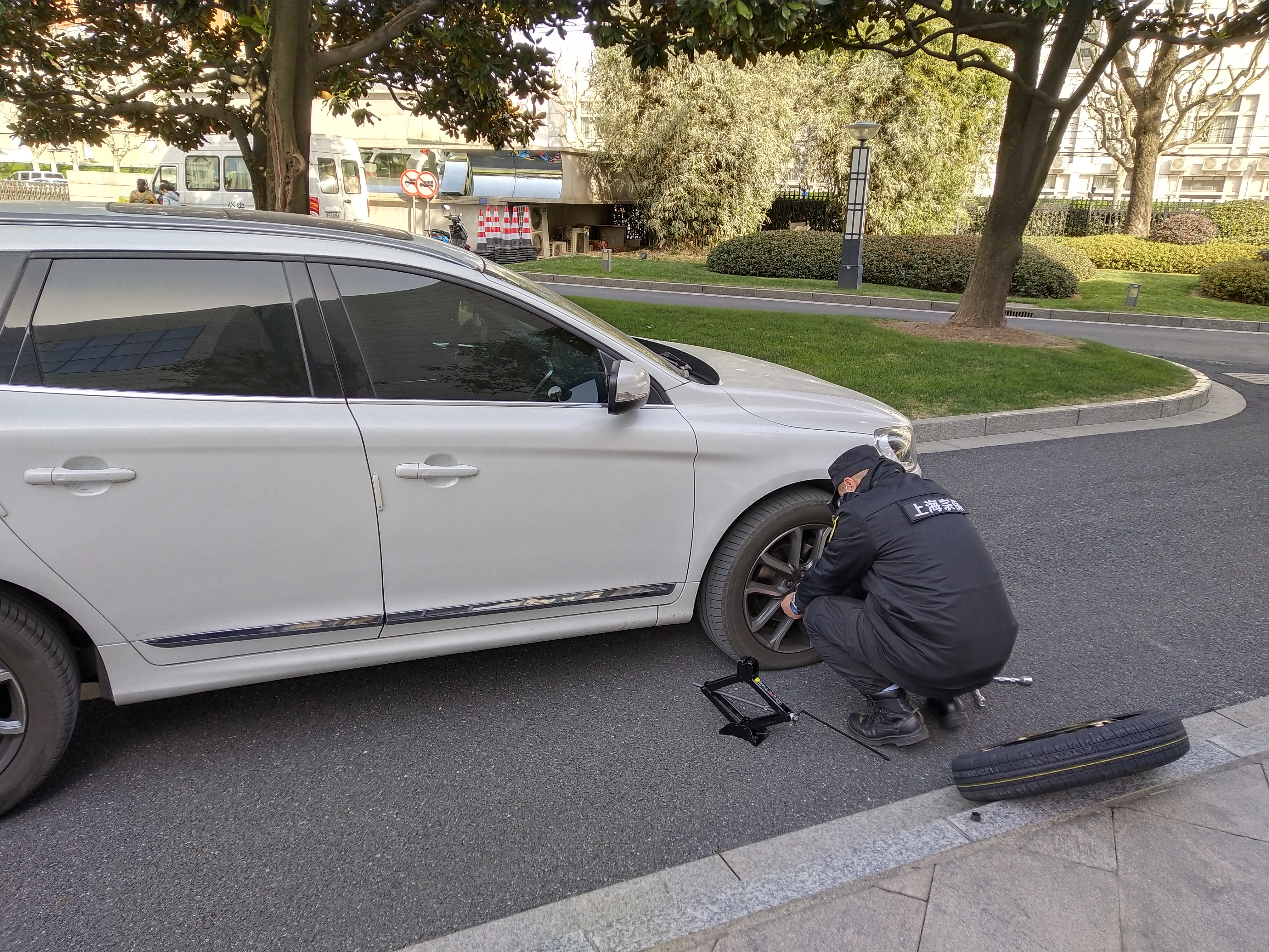 車胎沒氣無察覺 隊員幫忙換輪胎—市委黨校項目隊員幫助老師更換輪胎