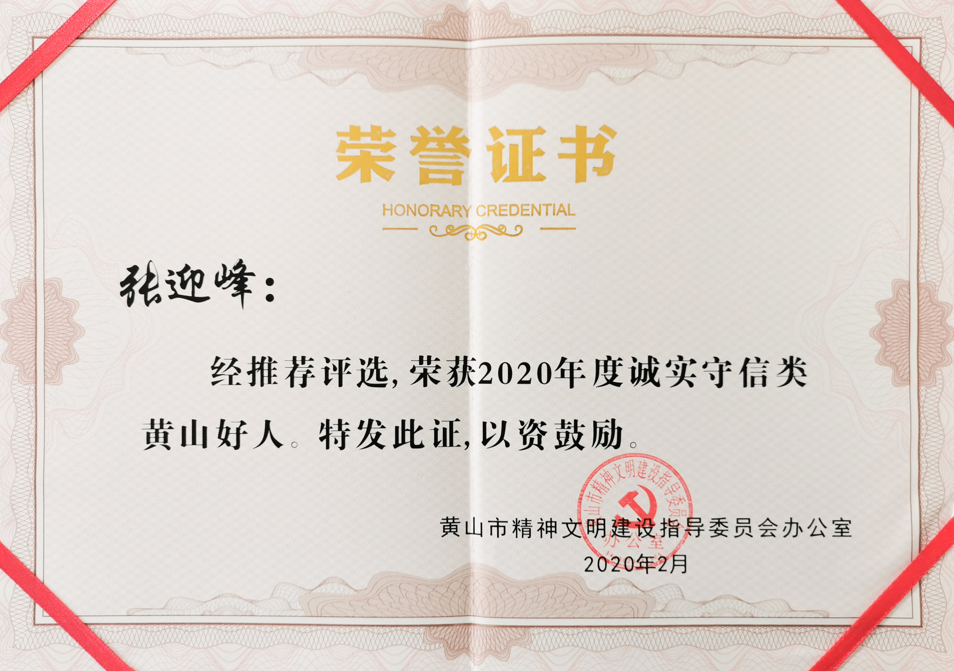 近日,宗保公司黃山分公司駐徽州區(qū)市容項目隊員張迎峰被評選為2020年誠實守信類黃山好人。