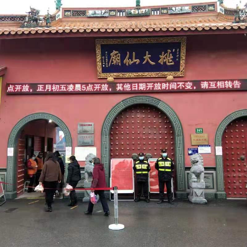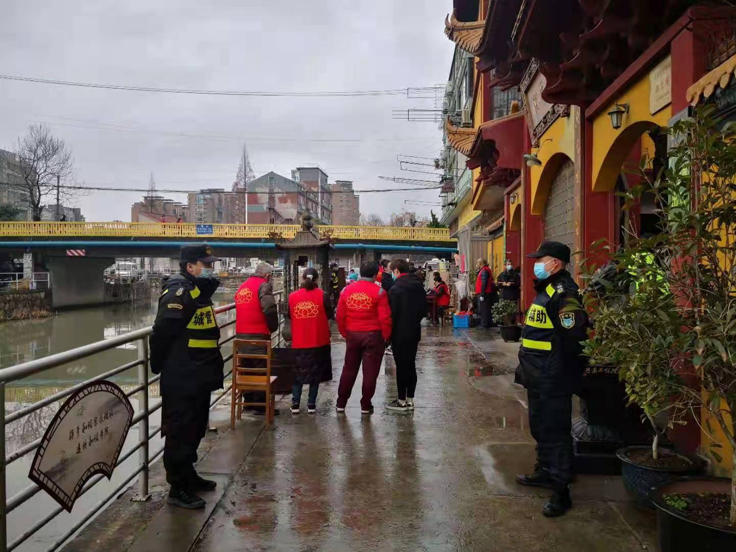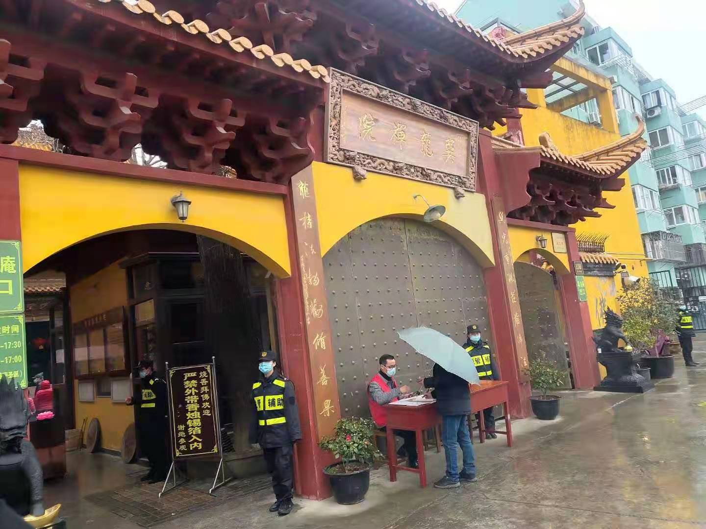 春節(jié)期間,眾多市民群眾到名寺古剎燒香祈福。為確保寺廟祈福活動場所安全有序,除夕當(dāng)天,宗保公司在公安民警和甲方領(lǐng)導(dǎo)的指導(dǎo)下,派出精干隊員全力參與上海、杭州兩地18座寺廟的秩序維護(hù)保障工作。