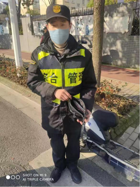 隊(duì)員巡邏撿提包 上交民警還失主—三林市容項(xiàng)目隊(duì)員撿到手提袋