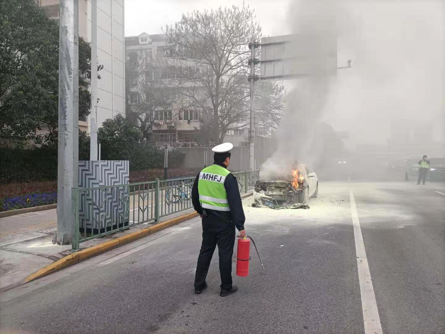 車輛追尾突自燃 妥善處置保暢通—虹橋交管輔警隊員幫助自燃車輛滅火