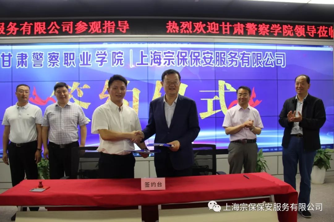 甘肅省公安廳黨委委員、甘肅警察職業(yè)學院黨委書記、院長任爾昕,甘肅警察職業(yè)學院黨委委員、副院長盧建軍、甘肅警察職業(yè)學院學生處處長杜維吉,上海宗保保安服務(wù)公司董事長馮中保攜工作組一同參加簽約儀式。