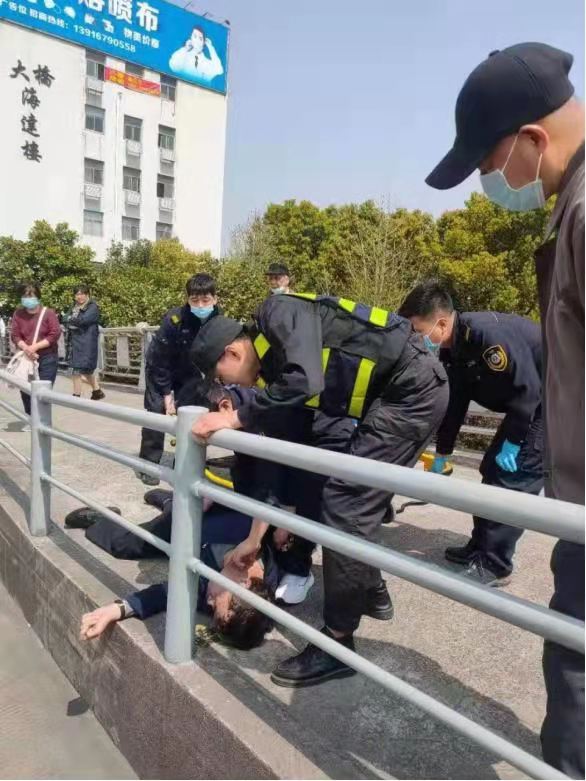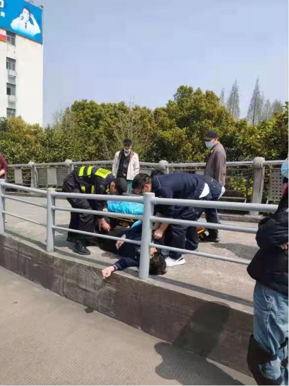 3月28日,李世耀和呂立志巡邏至上南路大橋時(shí),發(fā)現(xiàn)一名中年男子倒在地上,便立即上前查看。該男子毫無(wú)意識(shí)、處于昏迷狀態(tài)。情況緊急,李世耀立即撥打120急救電話和派出所內(nèi)部電話,并向組長(zhǎng)報(bào)告。同時(shí),呂立志則幫助男子保持呼吸暢通,不停地與他說(shuō)話,試圖讓他清醒過(guò)來(lái)。