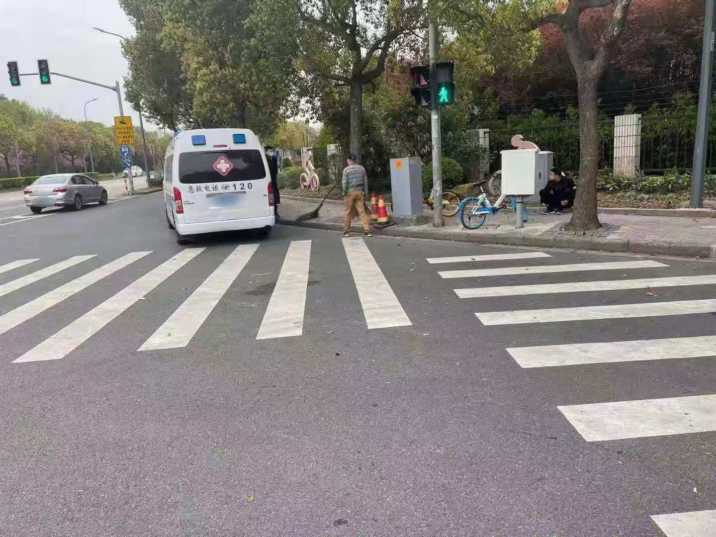 當(dāng)天9:10左右,盧迎輝在新金橋路金蘇路華為南門(mén)早高峰值勤時(shí),遇到一起交通事故,一位騎單車的男子與行駛中的小轎車相撞,男子當(dāng)即被撞出去三四米遠(yuǎn),倒在地上抽搐不止。