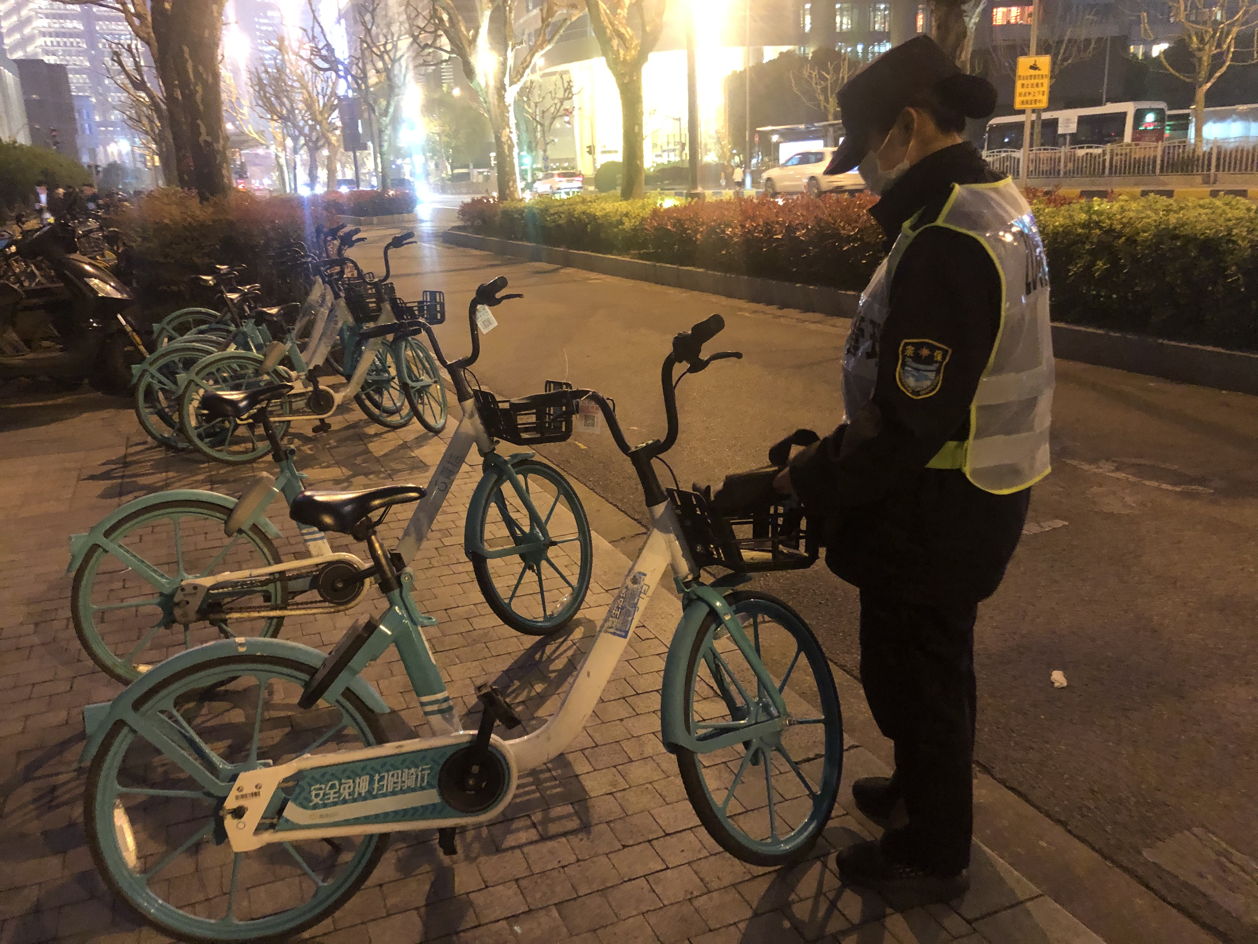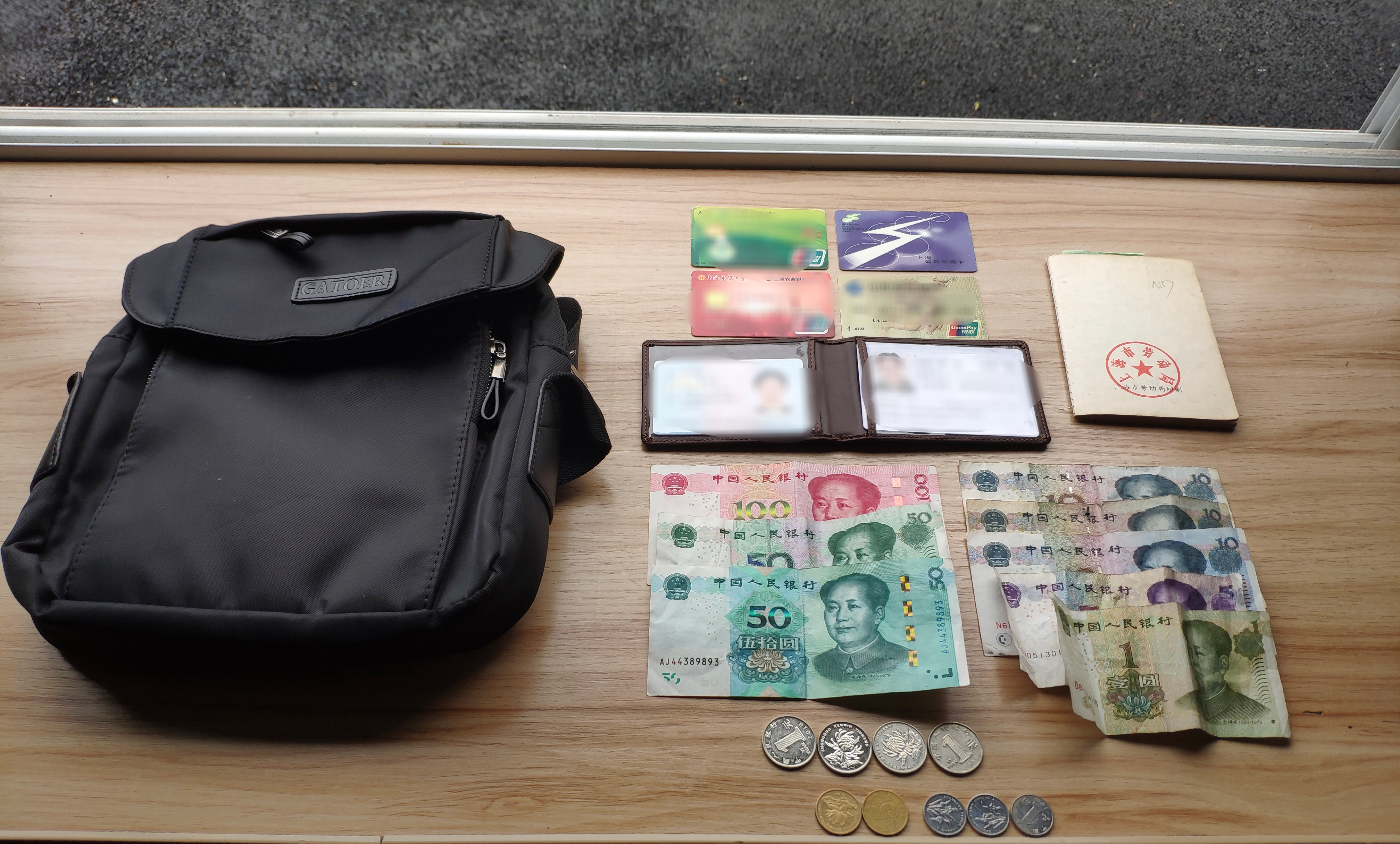 當(dāng)天21:00,許萌、劉明珠在濱江大道巡邏時(shí),發(fā)現(xiàn)人行道旁一輛共享單車上遺留一個(gè)黑色公文包,包內(nèi)有200多元現(xiàn)金、1張身份證、3張銀行卡和1張公交卡等物品,組長(zhǎng)許萌當(dāng)即用對(duì)講機(jī)向陸家嘴治安派出所指揮中心報(bào)告。