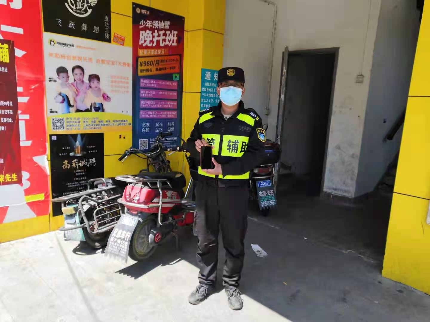 當(dāng)日11:30左右,趙春雷在東南萊市場(chǎng)弄堂口巡邏時(shí),撿到一部手機(jī),便立刻上報(bào)當(dāng)班組長(zhǎng),并于隨后趕到現(xiàn)場(chǎng)的當(dāng)班組長(zhǎng)一起留在原地等待失主。