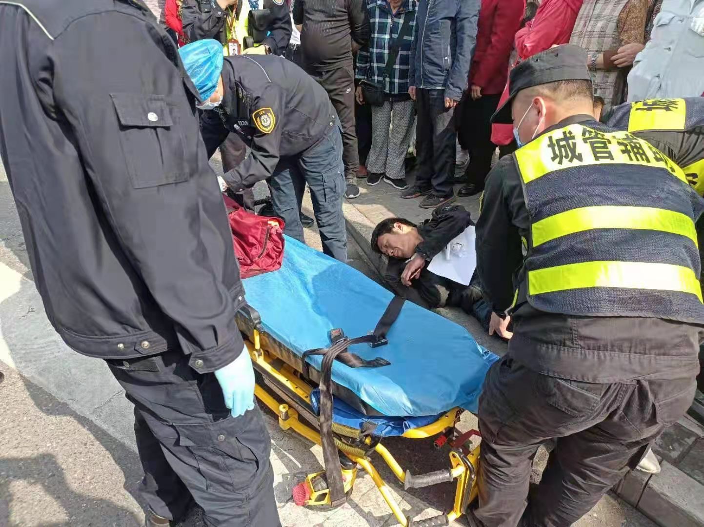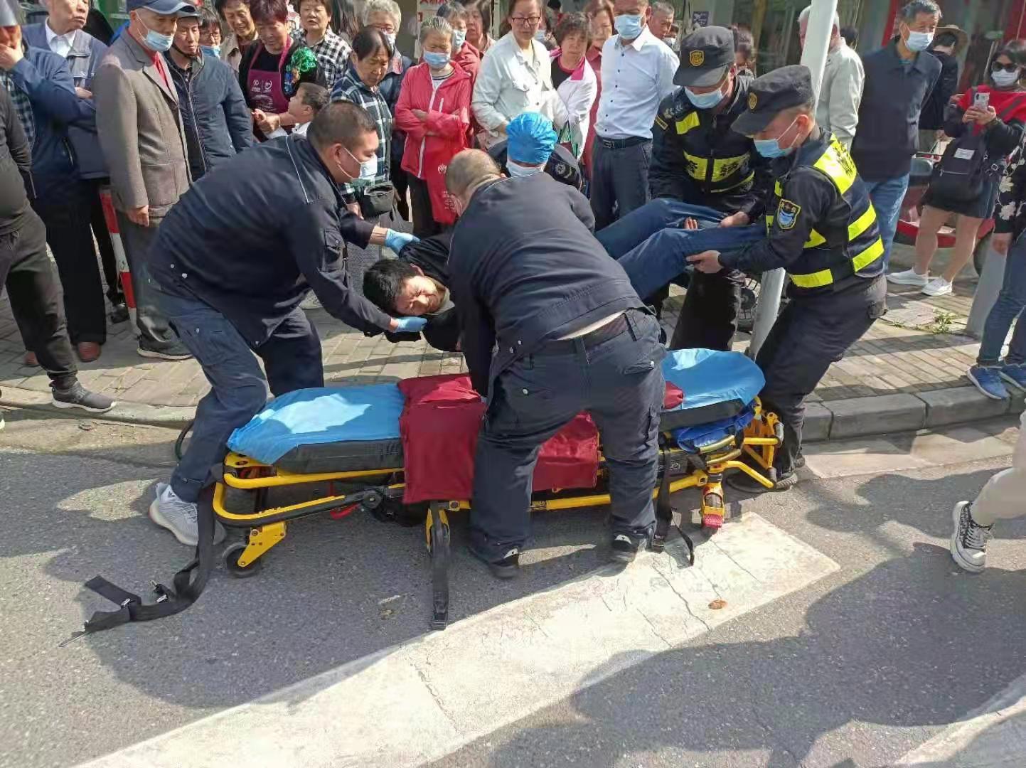 很快,120救護(hù)車和民警趕到現(xiàn)場(chǎng),隊(duì)員協(xié)助民警將男子抬上救護(hù)車,送往醫(yī)院救治。