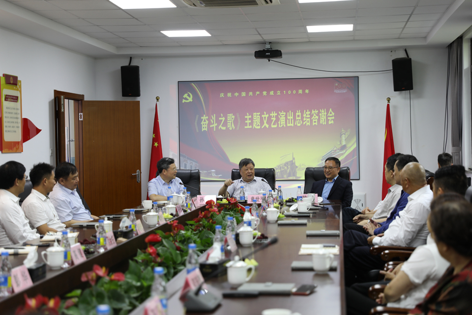 6月27日上午,《奮斗之歌》主題文藝演出總結(jié)答謝會(huì)在宗保公司召開,原總政治部副主任、中央軍委紀(jì)委書記童世平上將,上海警備區(qū)原副政委、市國防教育協(xié)會(huì)會(huì)長孫進(jìn),市退役軍人事務(wù)局局長黃沖、副局長李曉輝等出席會(huì)議,各主辦單位、協(xié)辦單位、演出單位代表參加了會(huì)議。