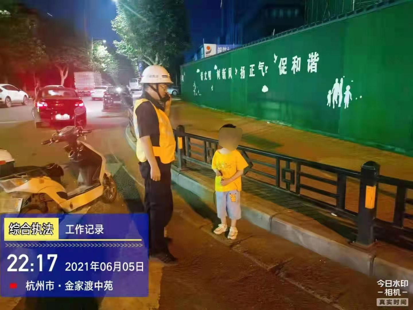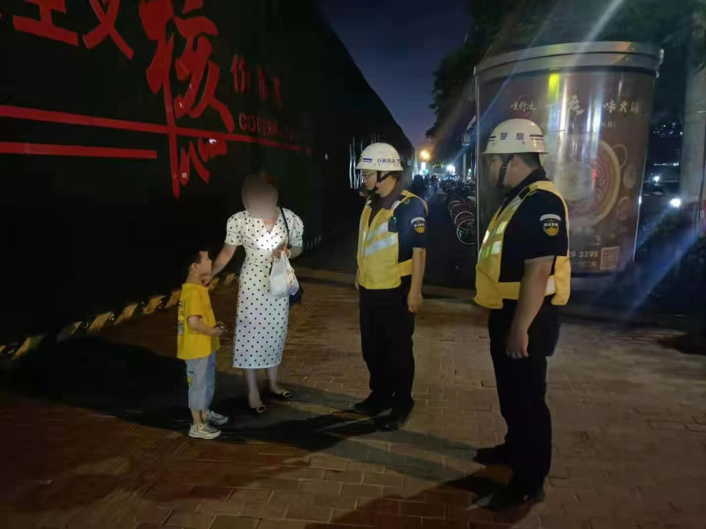 當(dāng)天22:17,孫明峰、李軍軍在金家渡路巡邏時(shí),發(fā)現(xiàn)一個(gè)小男孩站在馬路邊手足無(wú)措,神情慌張,旁邊沒(méi)有大人陪伴,過(guò)往車(chē)輛很多,十分危險(xiǎn)。