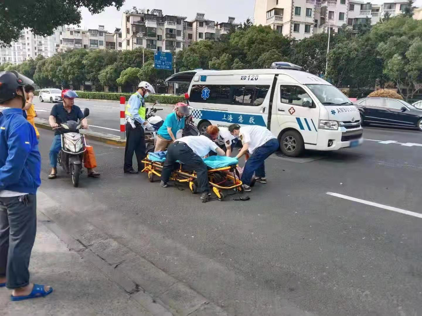 很快,救護(hù)車(chē)、交警先后趕到現(xiàn)場(chǎng),隊(duì)員們協(xié)助醫(yī)護(hù)人員將男子抬上救護(hù)車(chē),由醫(yī)護(hù)人員送男子前往醫(yī)院緊急救治。