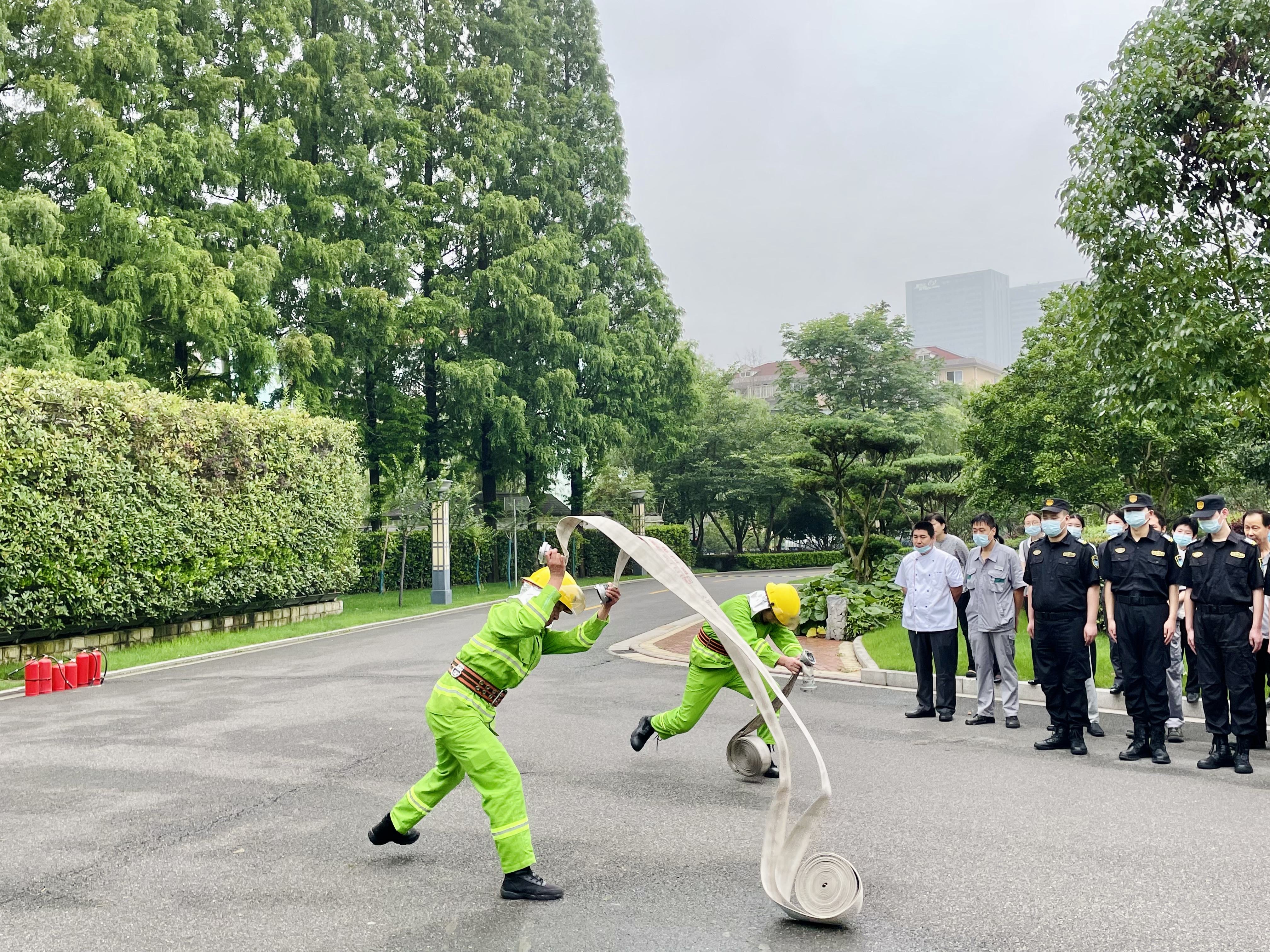 為進(jìn)一步增強(qiáng)宗保隊(duì)員消防安全防范意識,提高火災(zāi)應(yīng)急處置能力,6月18日上午,宗保公司駐市委黨校項(xiàng)目組織開展消防器材使用和消防安全應(yīng)急處置演練。