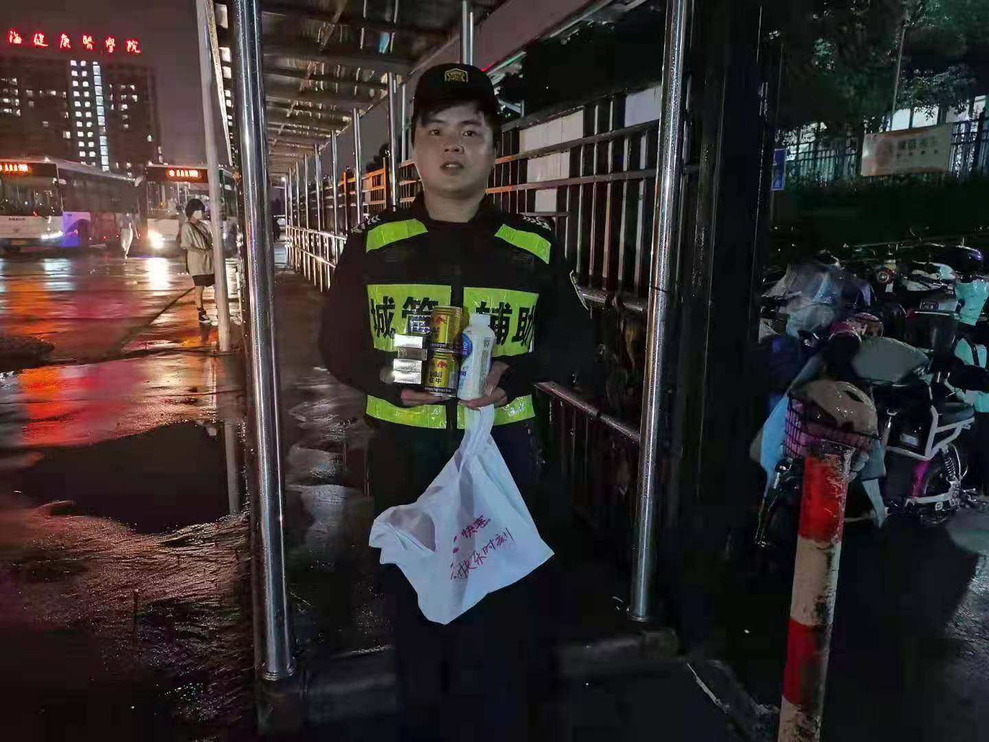 當(dāng)天20:00左右,劉福在周浦東地鐵站值勤時,突然有一名男子跑過來,遞給他一個塑料袋,說:“這么熱的天,你們辛苦了,這是給你們買的一些飲料。”