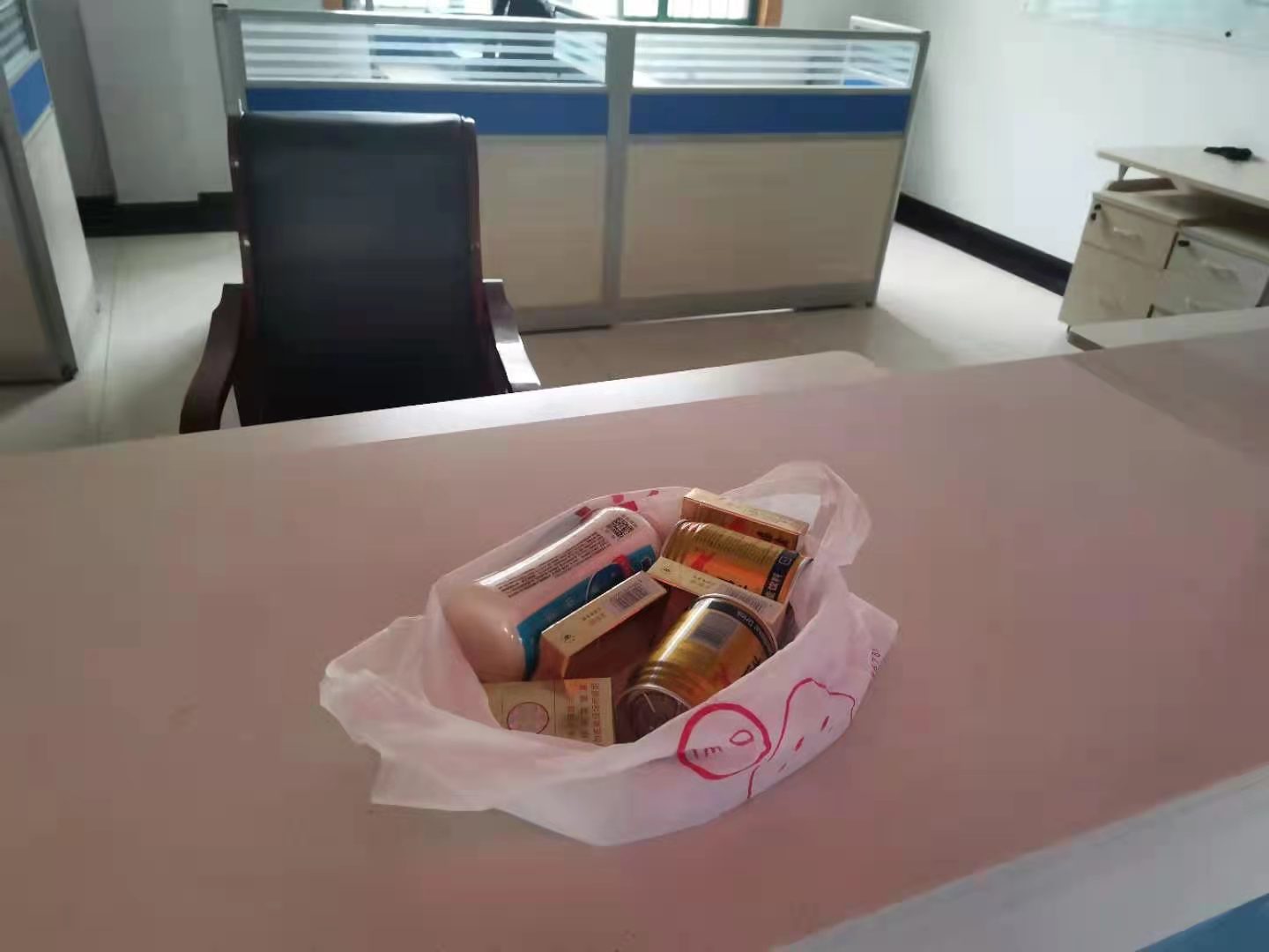 劉福立刻將情況上報當(dāng)班組長,班組長趕到現(xiàn)場和隊(duì)員一起查看,袋內(nèi)有四包黃山香煙,兩瓶紅牛,一瓶味全乳酸菌。隨后,班組長將物品上交城管隊(duì)窗口,得到了甲方領(lǐng)導(dǎo)的好評!