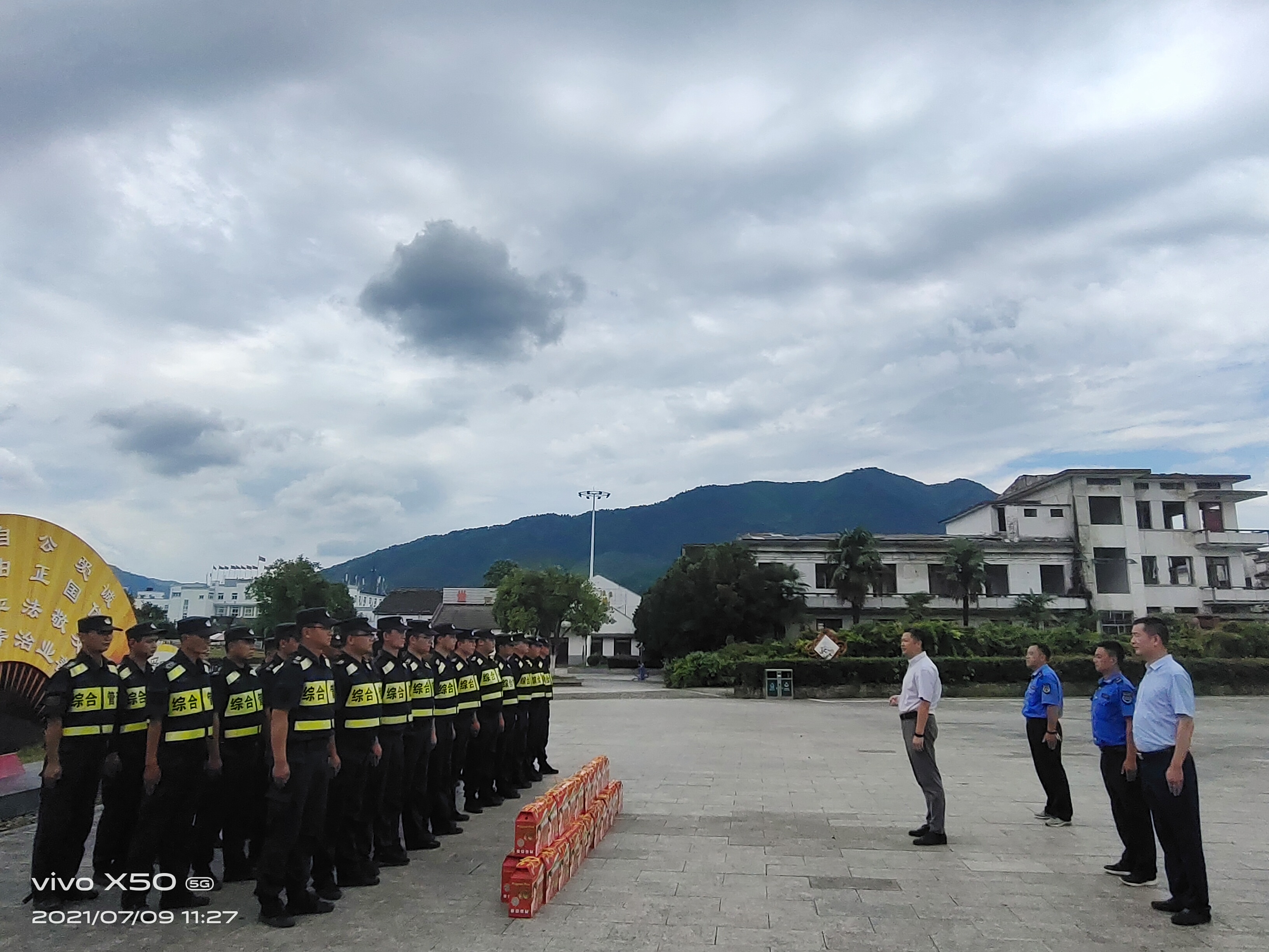 7月9日上午,黃山區(qū)城市管理行政執(zhí)法局局長(zhǎng)汪雷春、執(zhí)法大隊(duì)教導(dǎo)員黃亮、中隊(duì)長(zhǎng)曹太平等一行,冒著炎炎烈日,慰問(wèn)奮戰(zhàn)在一線的宗保公司隊(duì)員。