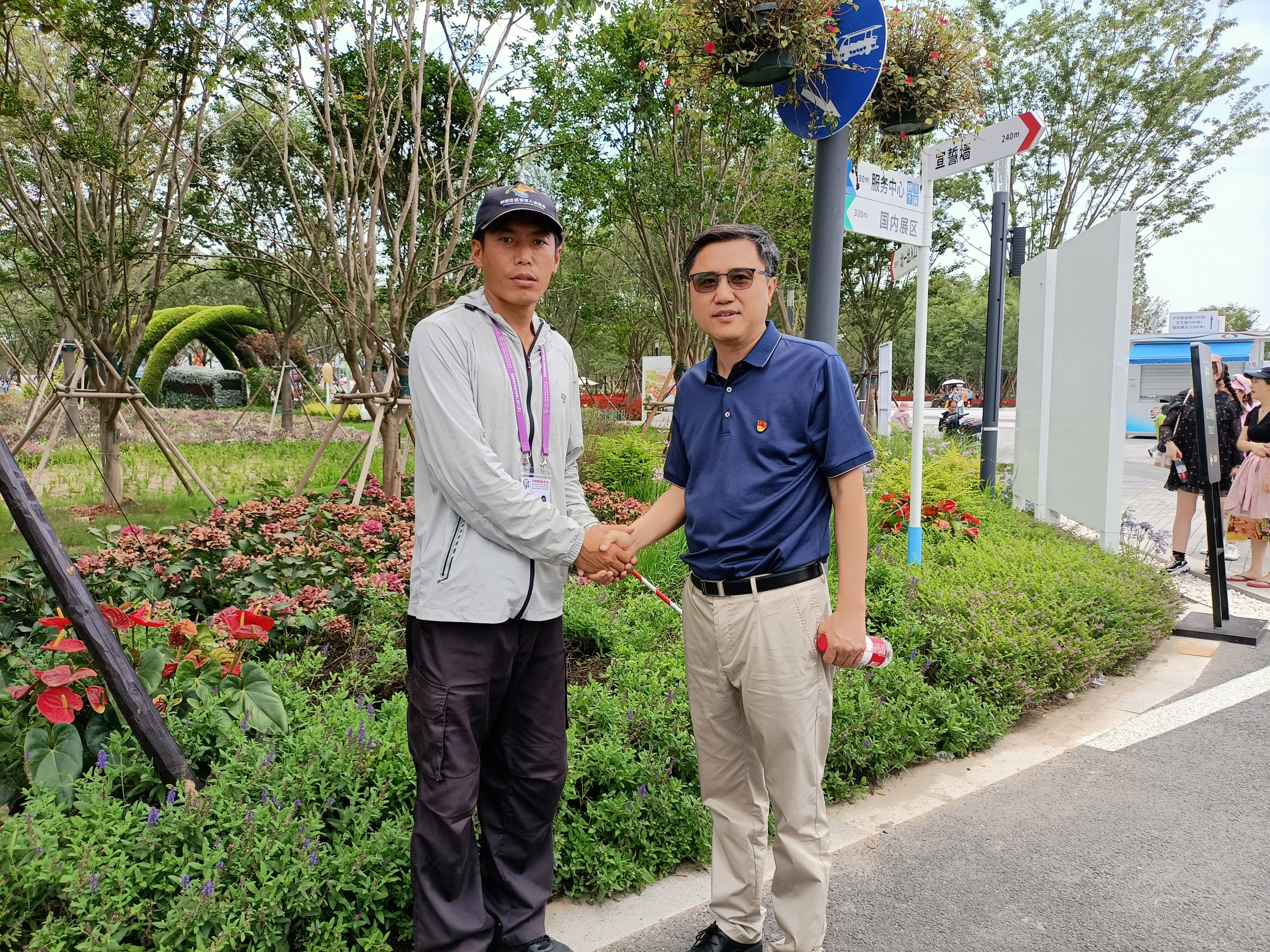 6月25日,崇明區(qū)退役軍人事務(wù)局局長(zhǎng)黃松奪、副局長(zhǎng)馬永鋒、退役軍人服務(wù)中心主任黃蕾、思想政治和權(quán)益維護(hù)負(fù)責(zé)人錢穎等一行來到花博會(huì)園區(qū),看望慰問堅(jiān)守一線崗位的宗保公司退役軍人志愿者。