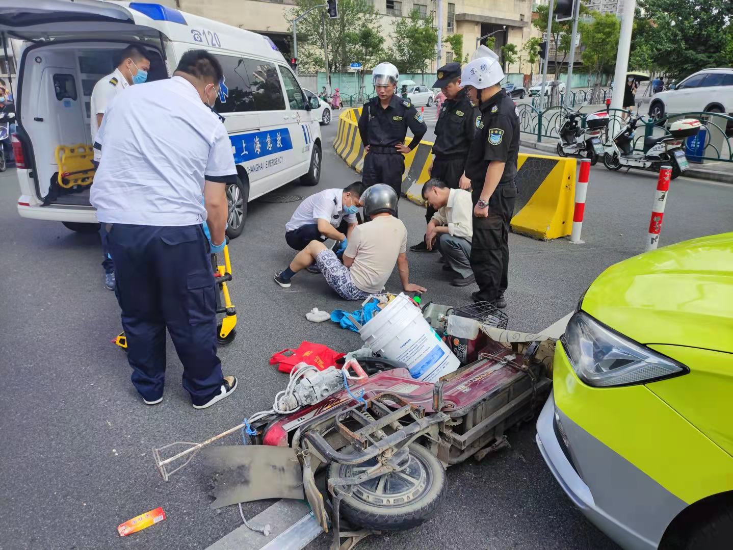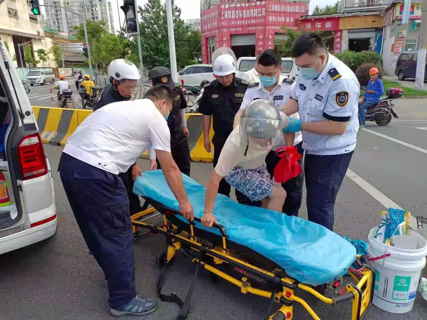 很快,交警和120救護車趕到現(xiàn)場,定好責任后,隊員協(xié)助交警將電瓶車推到路邊,幫助救護人員將受傷駕駛員送上救護車,然后回到崗位繼續(xù)值勤。