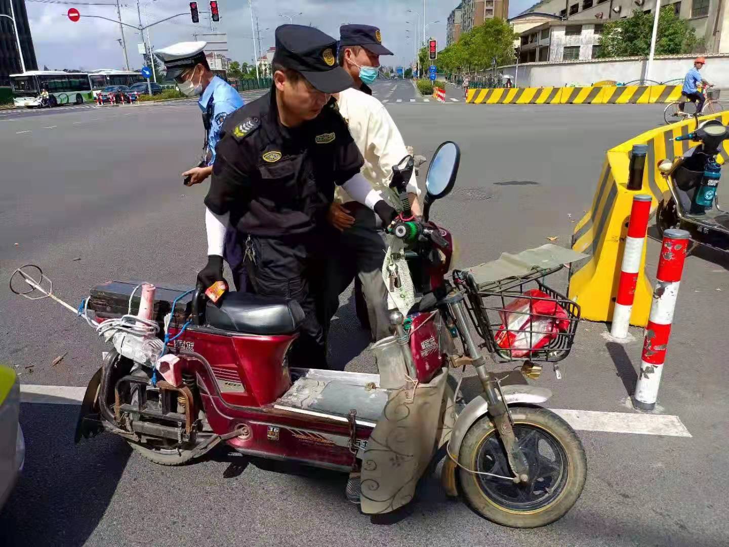 當天18:40,隊員劉明念在東湖街道北沙西路156號金都夏宮附近巡邏時,看到一位阿姨騎著電動三輪車緊貼馬路牙子,一直在加速,但電動三輪車就是不動。看到這一幕的劉明念,趕緊上前詢問。