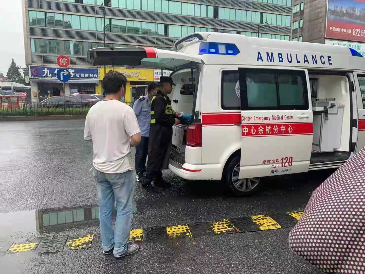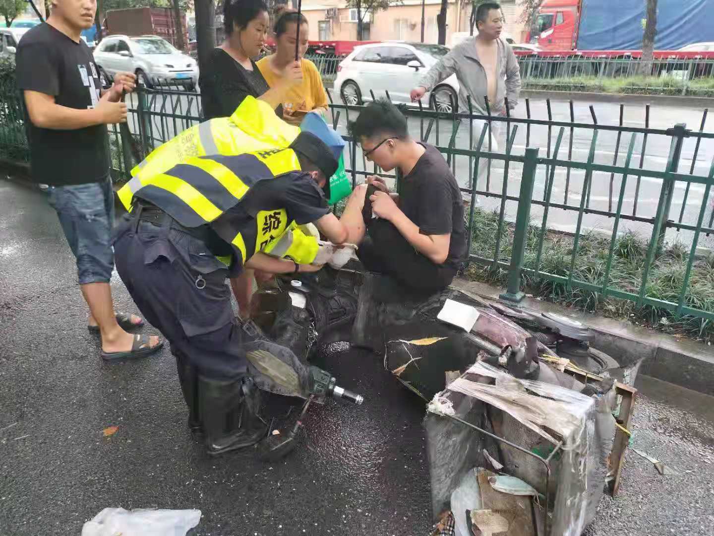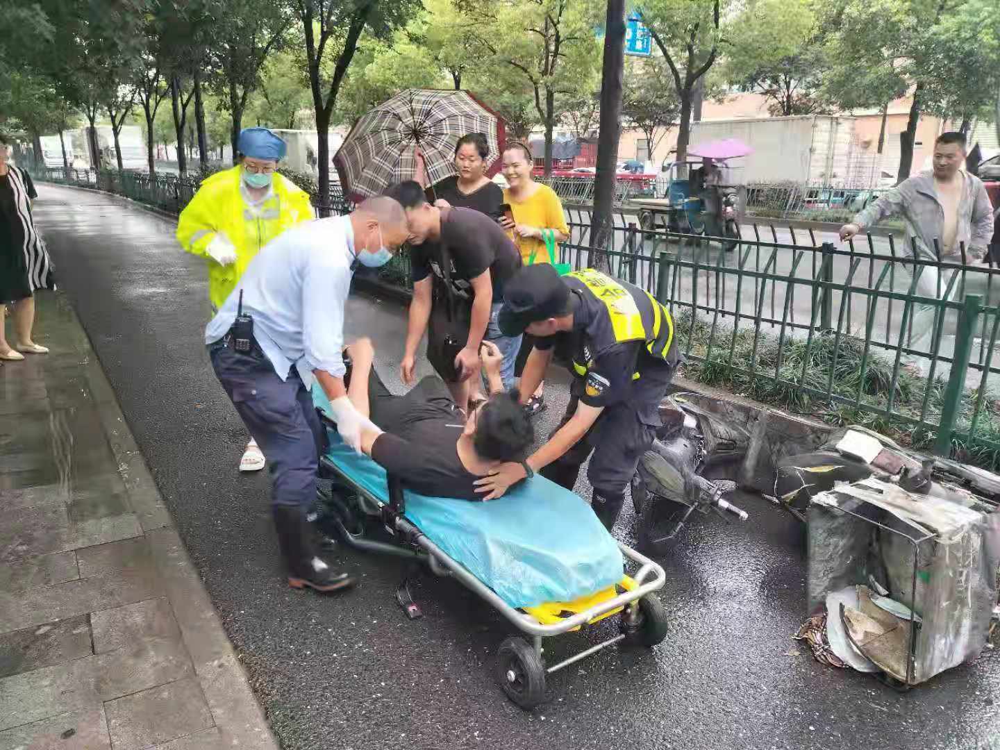 7月24日,浙江民泰良渚物流項目隊員幫助騎車摔傷男子及時就醫(yī)。
