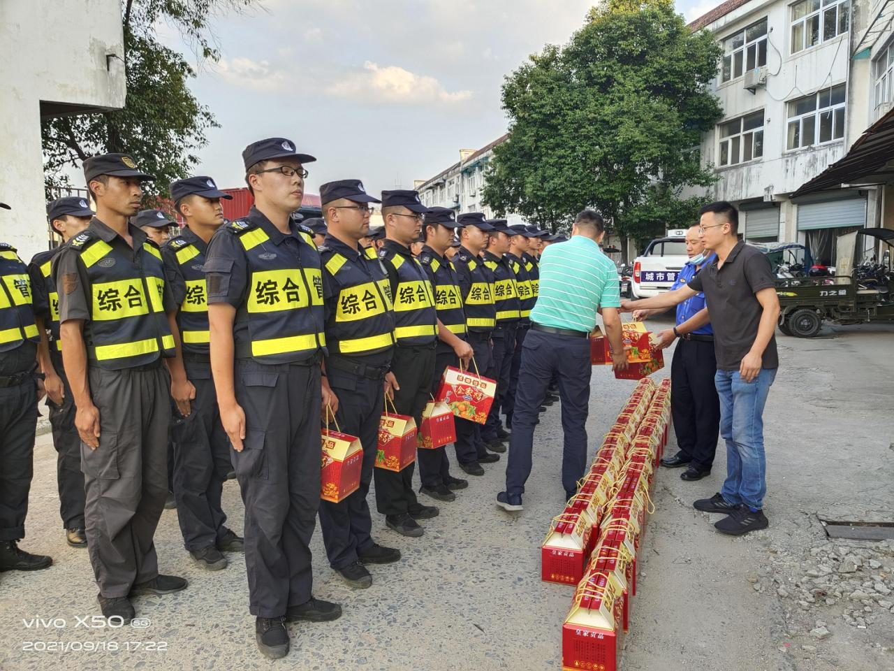 9月18日下午,黃山區(qū)城市管理行政執(zhí)法局局長(zhǎng)汪雷春、副局長(zhǎng)王磊、中隊(duì)長(zhǎng)曹太平一行慰問宗保公司駐黃山區(qū)太平市容項(xiàng)目隊(duì)員。