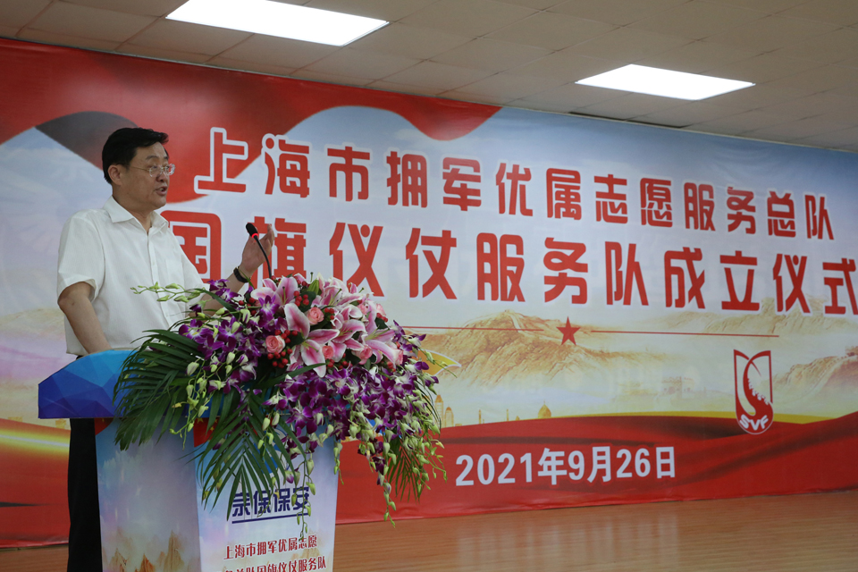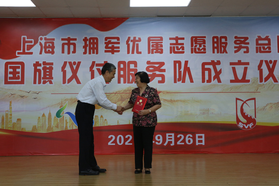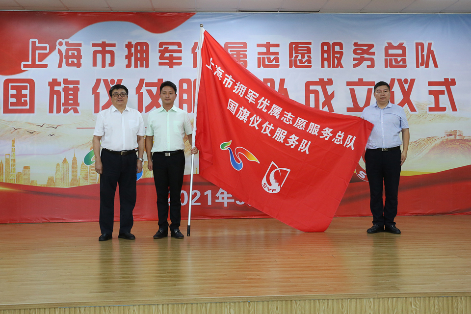 9月26日,上海市擁軍優(yōu)屬志愿服務(wù)總隊(duì)在宗保公司大禮堂舉行國旗儀仗服務(wù)隊(duì)成立授旗儀式。