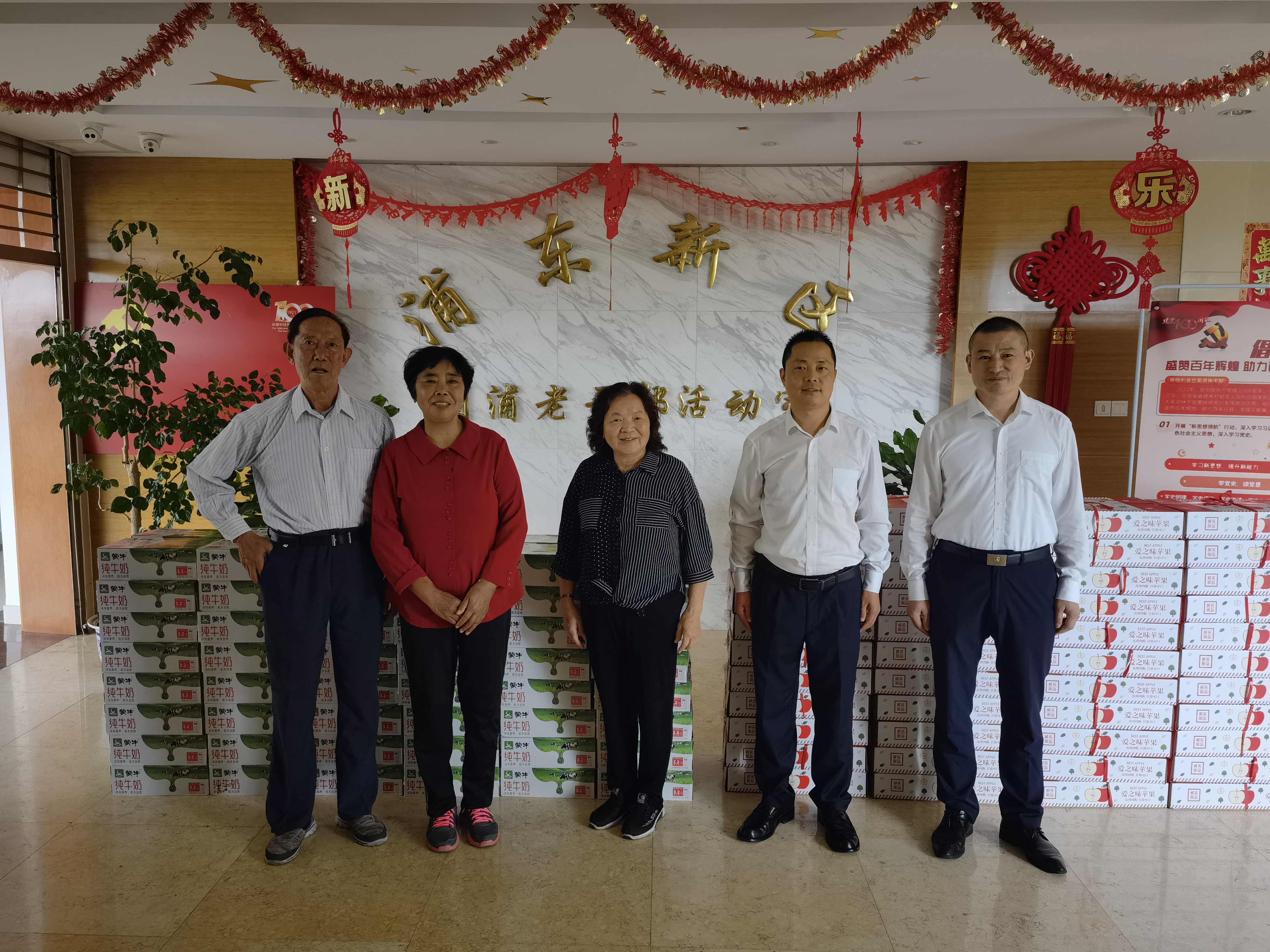 兩位經(jīng)理與老干部們拉家常、話變化、談感受,了解他們的身體情況,介紹公司的業(yè)務(wù)發(fā)展,為離退休老干部送上100箱牛奶、100箱蘋(píng)果,并代表公司創(chuàng)始人馮中保祝老干部們健康長(zhǎng)壽、生活幸福。
