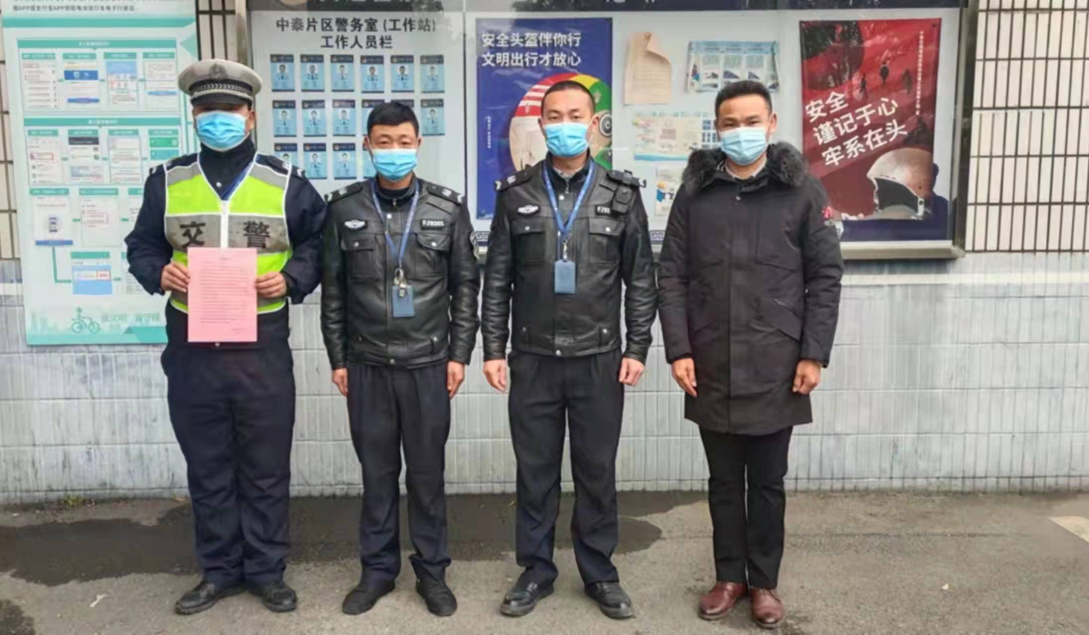 12月28日,浙江民泰公司駐中泰交管輔助項目收到余杭區(qū)中泰街道交警工作站站長王平、指導員應海松的表揚信,表揚民泰員工盡心履職突出的工作表現。