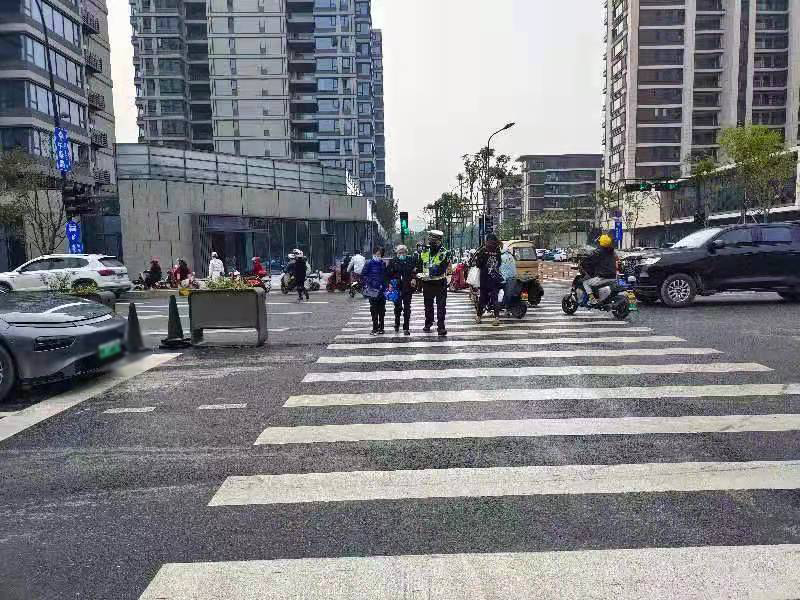 守護校園安全時,冒著嚴寒、頂著酷暑,配合交警工作站守候在上學放學路上,維護著交通秩序,值守著學生安全,發(fā)現隱患及時上報,避免了事故的發(fā)生。