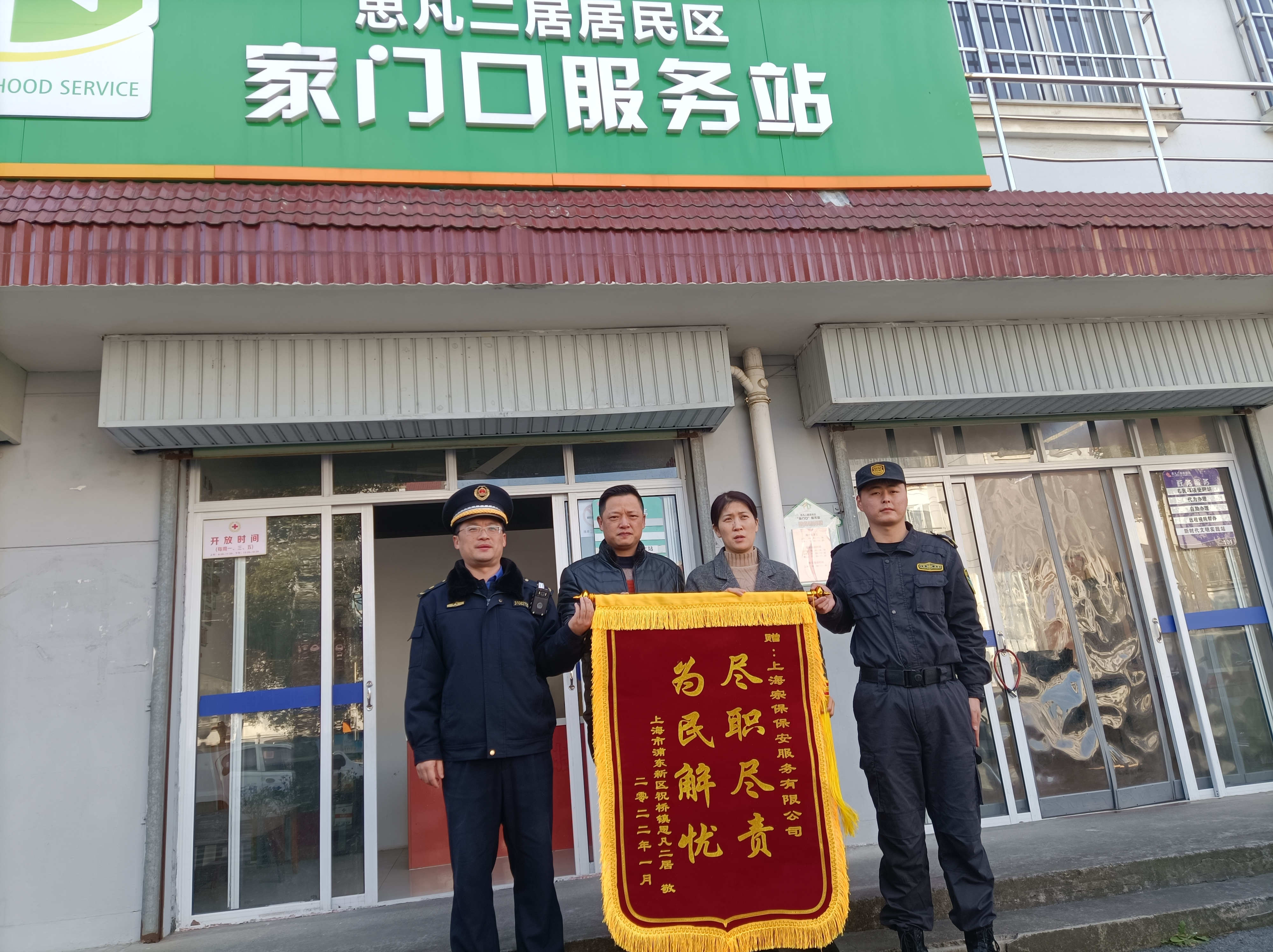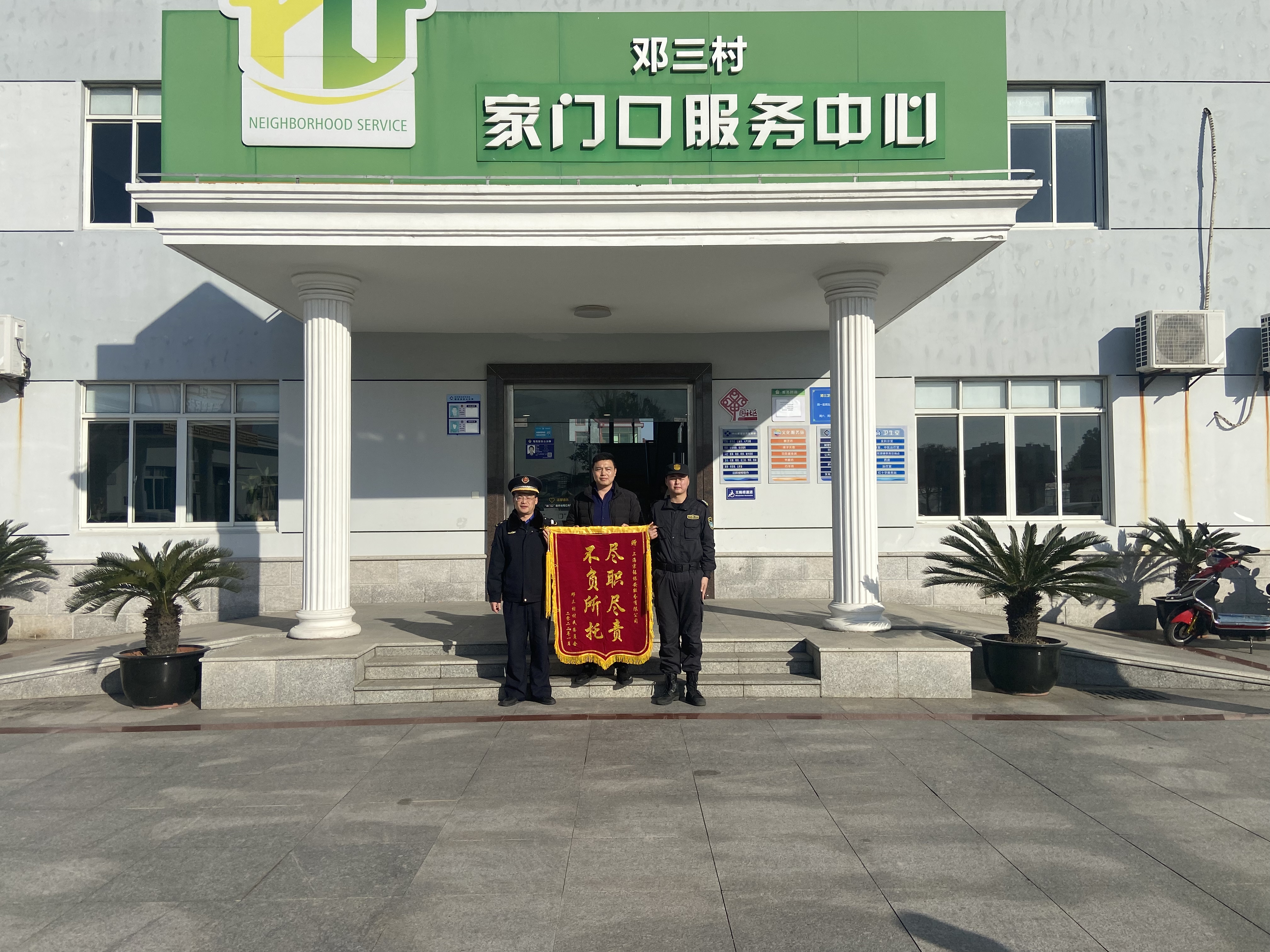 1月12日,宗保公司駐祝橋項(xiàng)目收到祝橋鎮(zhèn)居家養(yǎng)老服務(wù)中心送來的繡有“愛崗敬業(yè)盡職盡責(zé) 高效周到衛(wèi)士本色”的錦旗,贊揚(yáng)宗保隊(duì)員馬朝清優(yōu)異的工作表現(xiàn)。