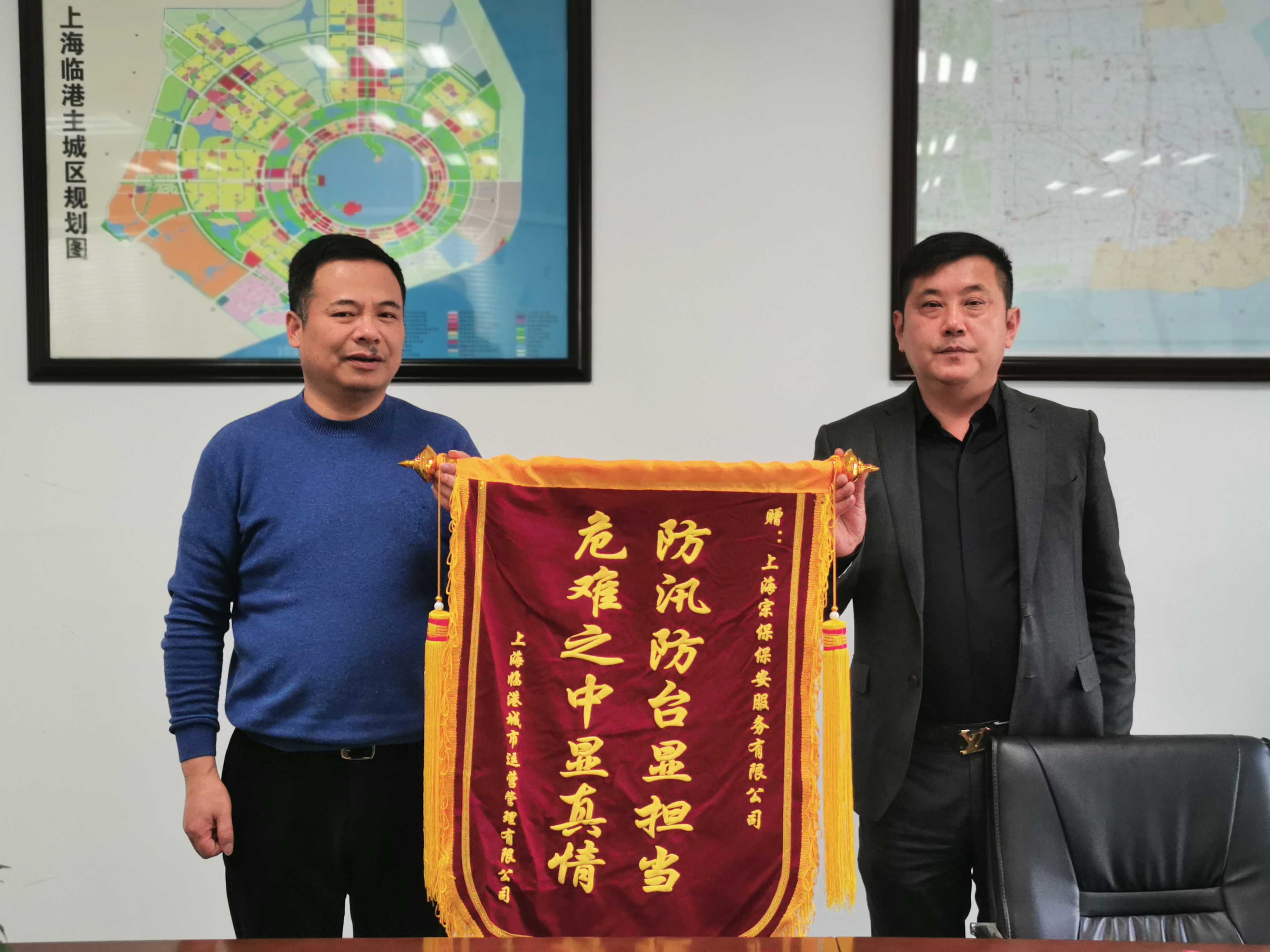 1月19日,宗保公司收到上海臨港城市運(yùn)營管理有限公司一面繡有“防汛防臺顯擔(dān)當(dāng) 危難之中顯真情”的錦旗,表揚(yáng)公司在抗擊臺風(fēng)期間優(yōu)異的工作表現(xiàn)。