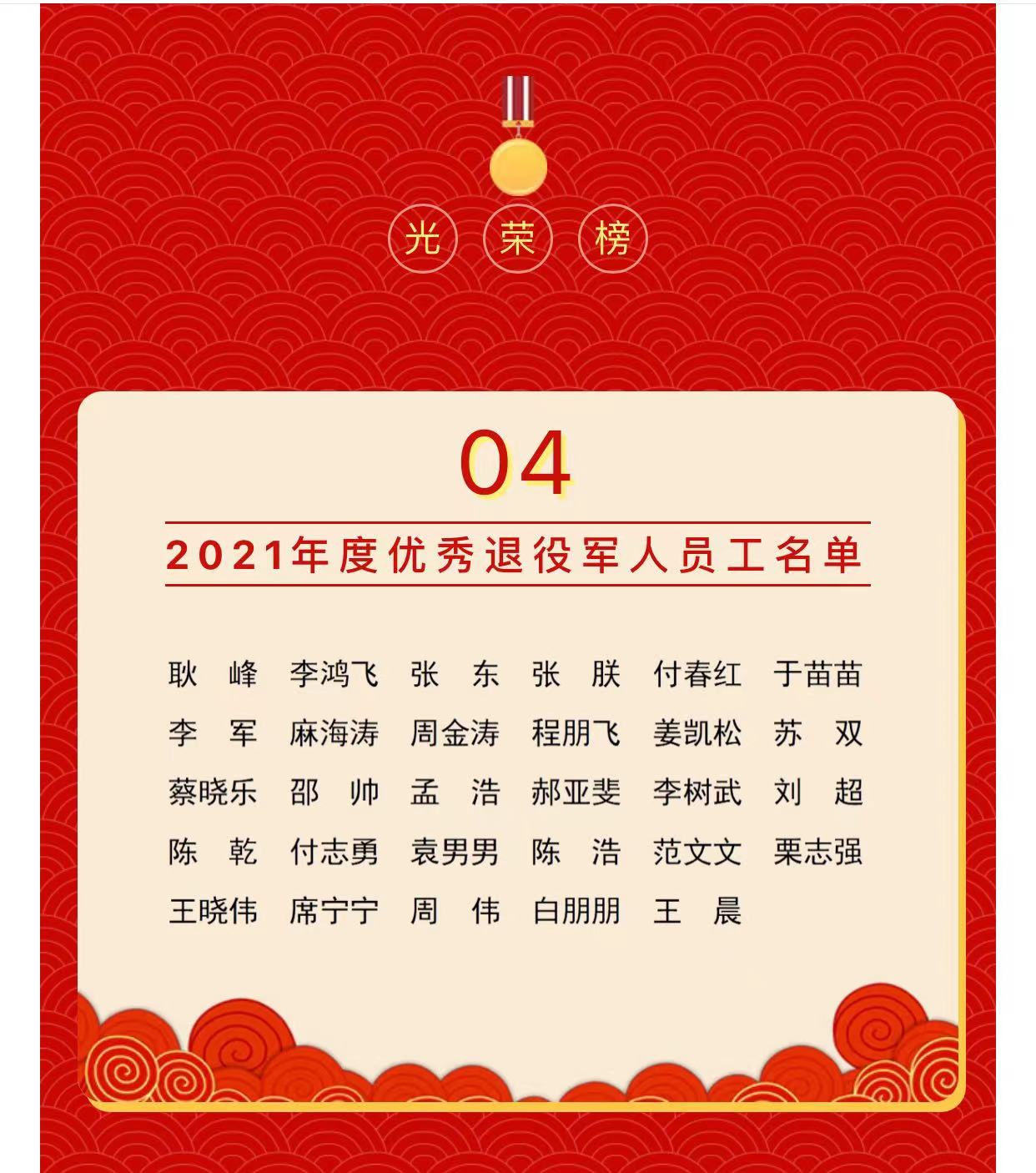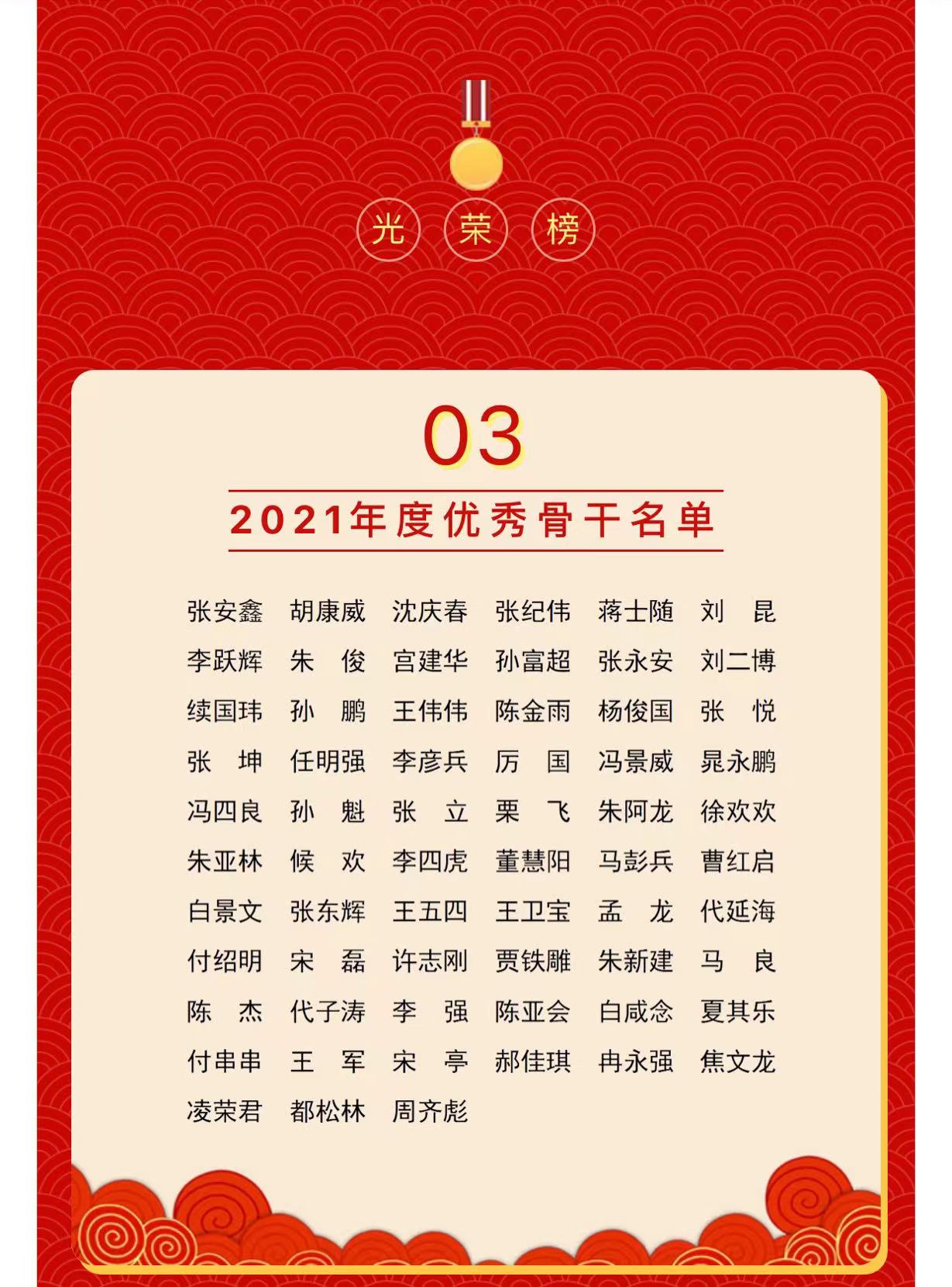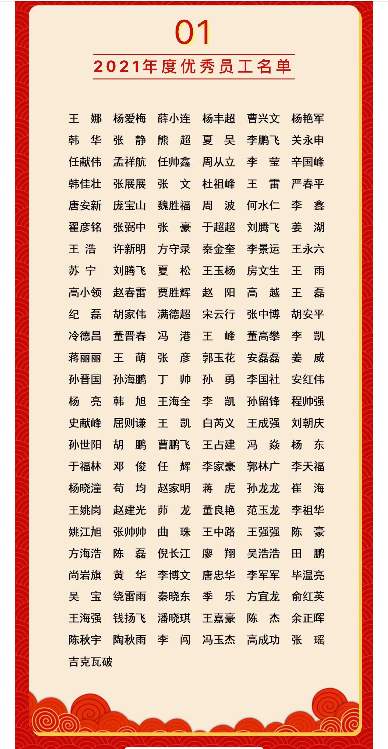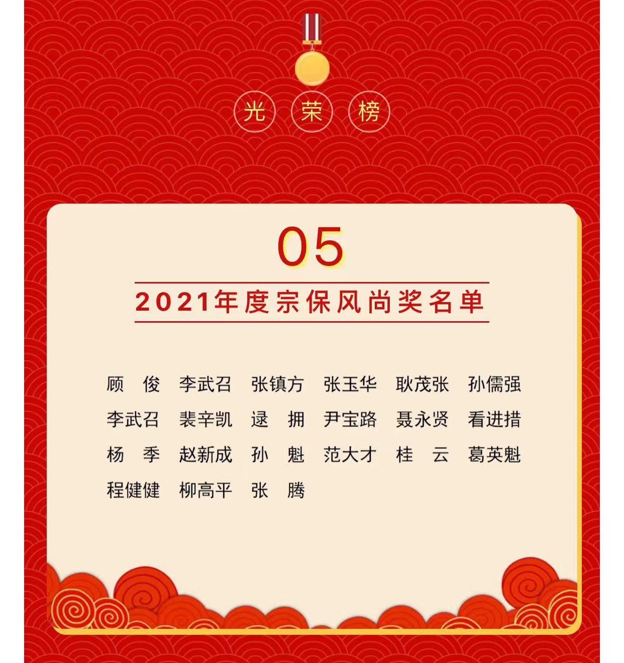 公司董事會在各項目、各區(qū)域推薦,廣泛征求意見的基礎(chǔ)上,評選出了13個“優(yōu)秀團(tuán)隊”、29名“優(yōu)秀退役軍人員工”、61名“抗疫先進(jìn)個人”、21名“宗保風(fēng)尚獎”、63名“優(yōu)秀骨干”和151名“優(yōu)秀員工”。
