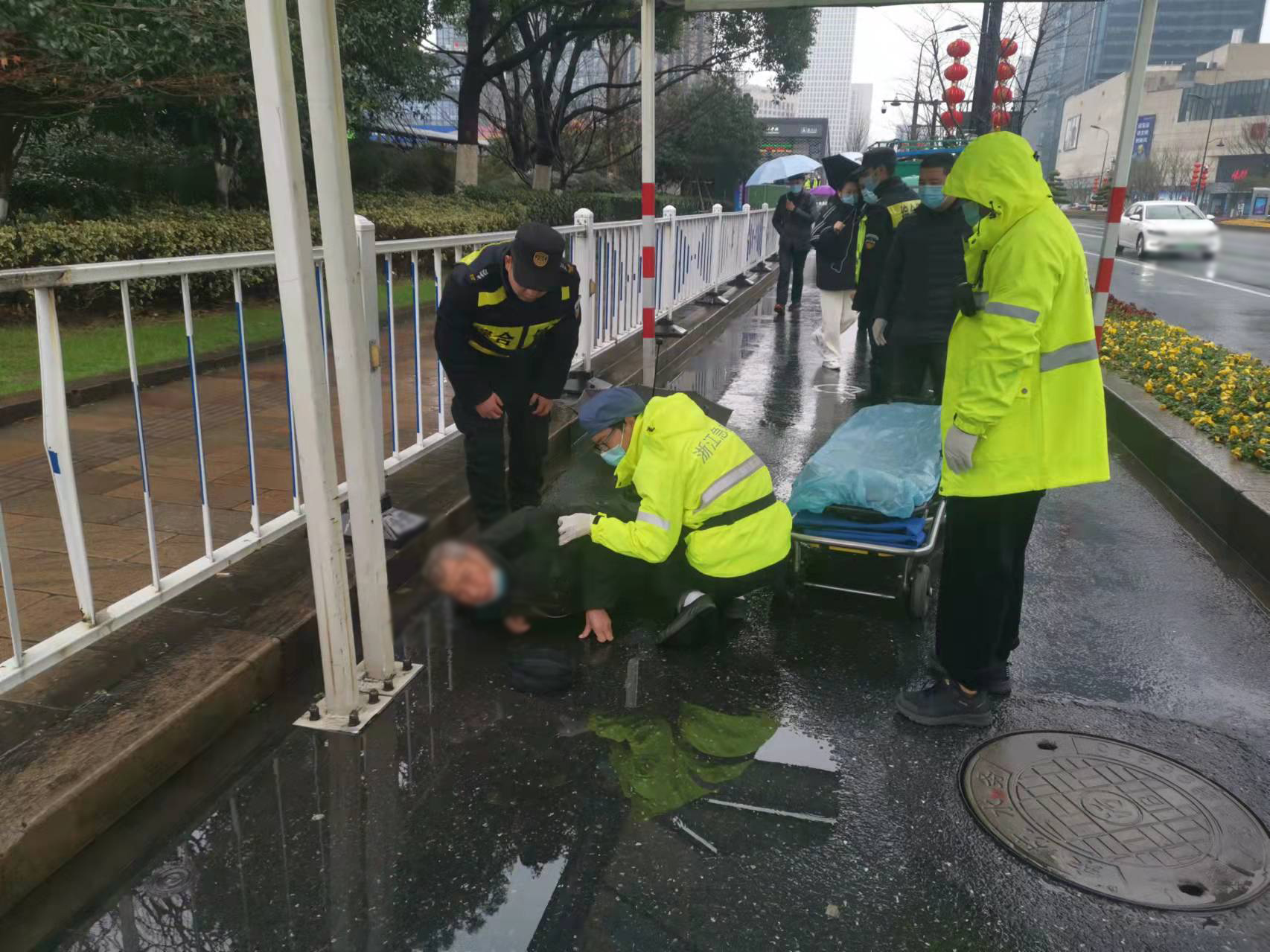 1月27日,浙江民泰駐閑林城管項(xiàng)目隊(duì)員及時(shí)救助車禍?zhǔn)軅印?br />