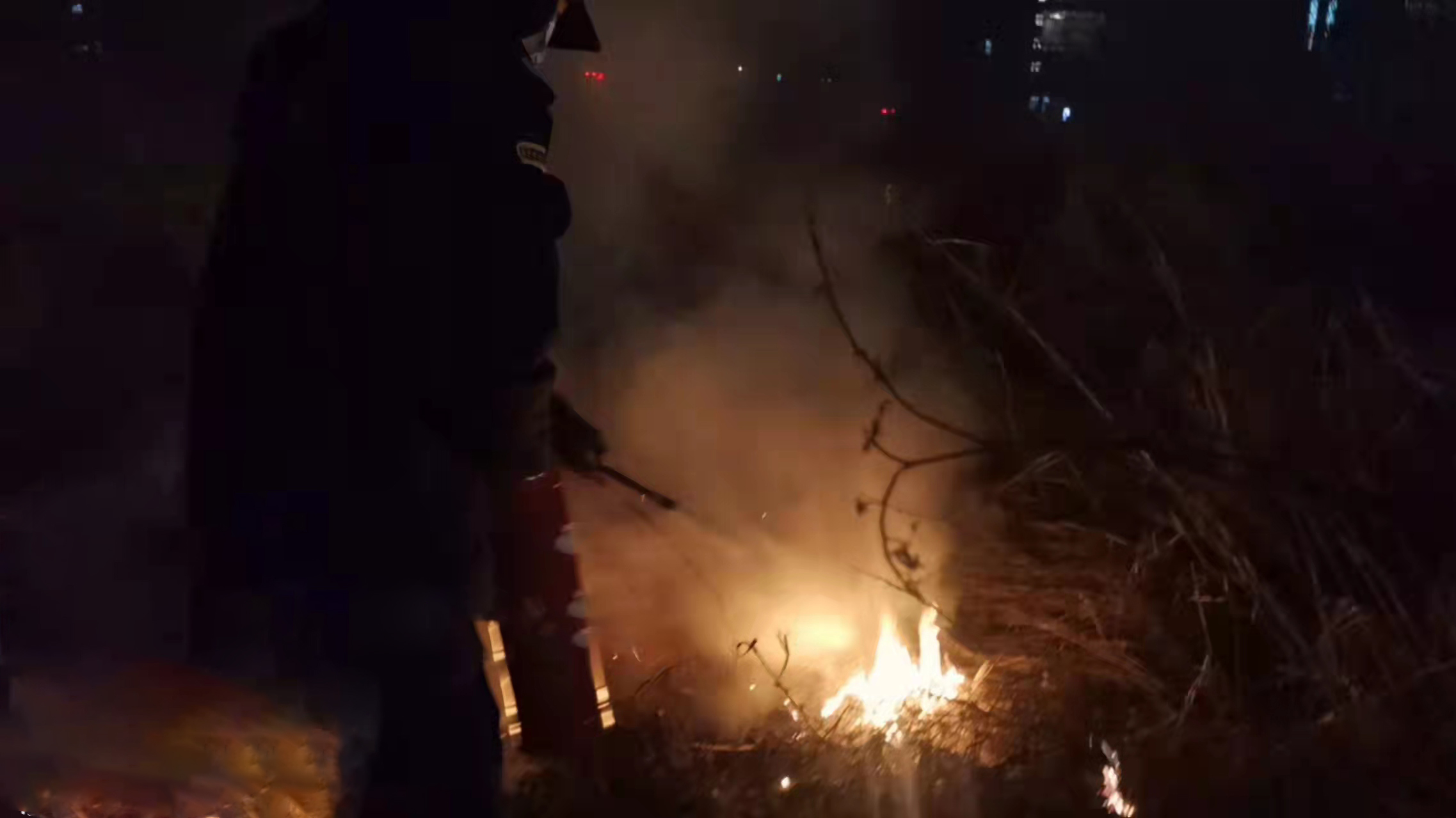 當(dāng)晚23:35,田保、蔣紅曬在值班室值班時(shí),發(fā)現(xiàn)歡樂谷北路公交站東門對(duì)面的草坪燃起火光。情況緊急,兩人立即將情況上報(bào)帶班組長(zhǎng),并按指示迅速從宿舍門崗拿上兩瓶滅火器,火速趕到起火現(xiàn)場(chǎng)。經(jīng)過近10分鐘的奮力撲救,兩人成功將火撲滅,避免了事態(tài)進(jìn)一步擴(kuò)大。