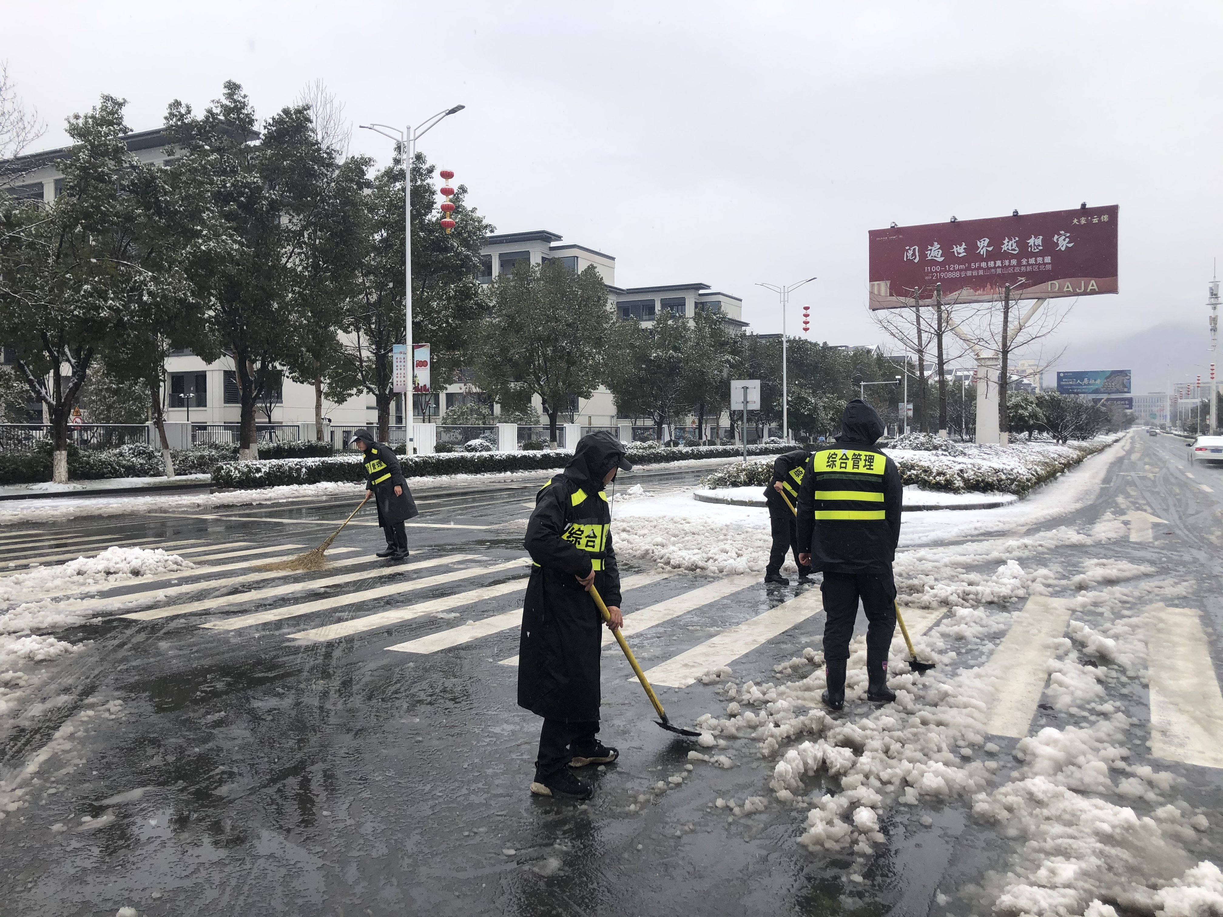 2月6日,黃山、杭州多地普降大雪。雪后的大地銀裝素裹,但也給交通和廣大市民的出行安全帶來(lái)困擾。