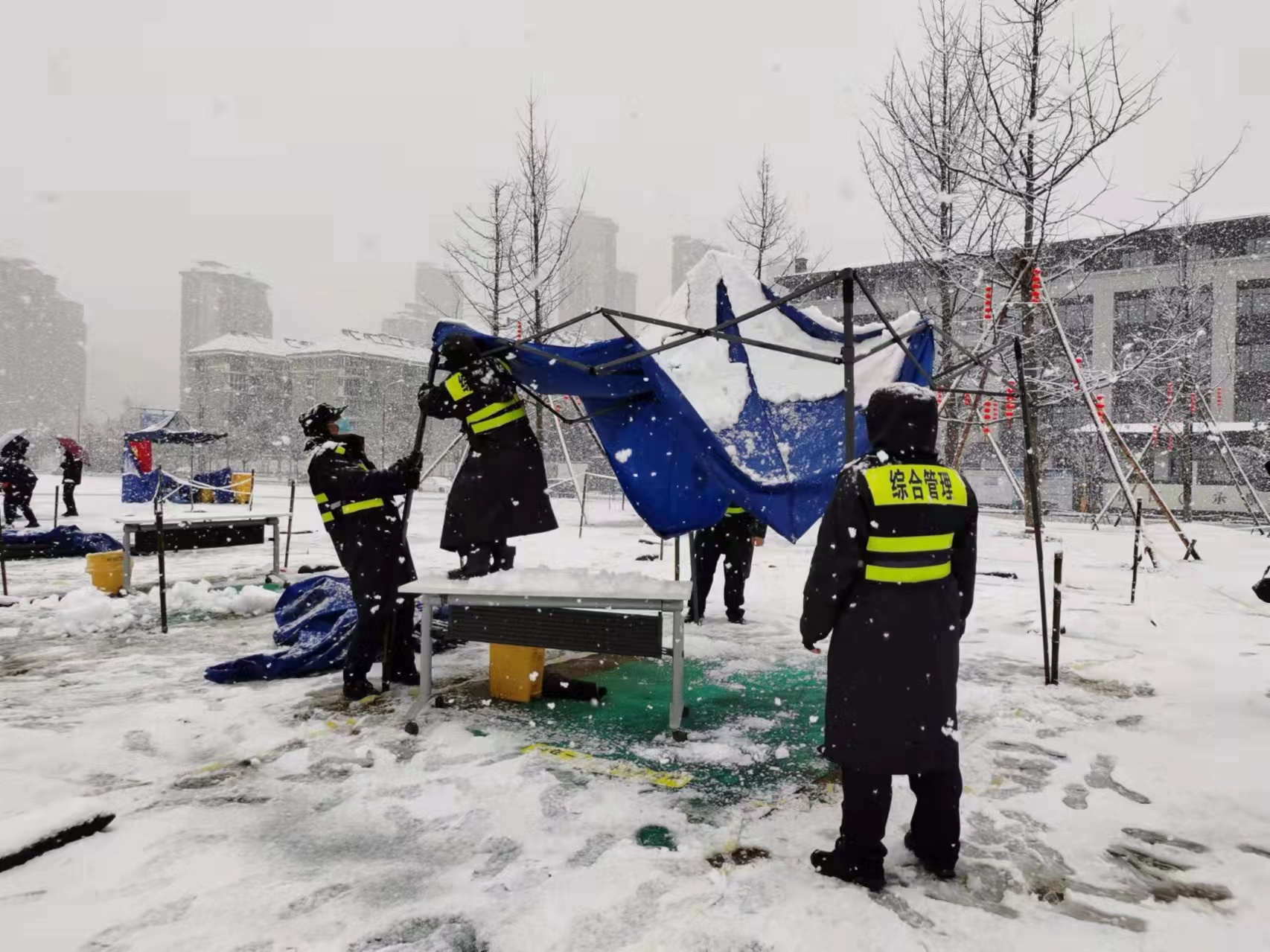為有效防范雨雪天氣安全事故的發(fā)生,宗保公司按照甲方單位的安排和要求,積極響應(yīng),迅速行動(dòng),立即組織隊(duì)員加入清雪除冰的行動(dòng)中。