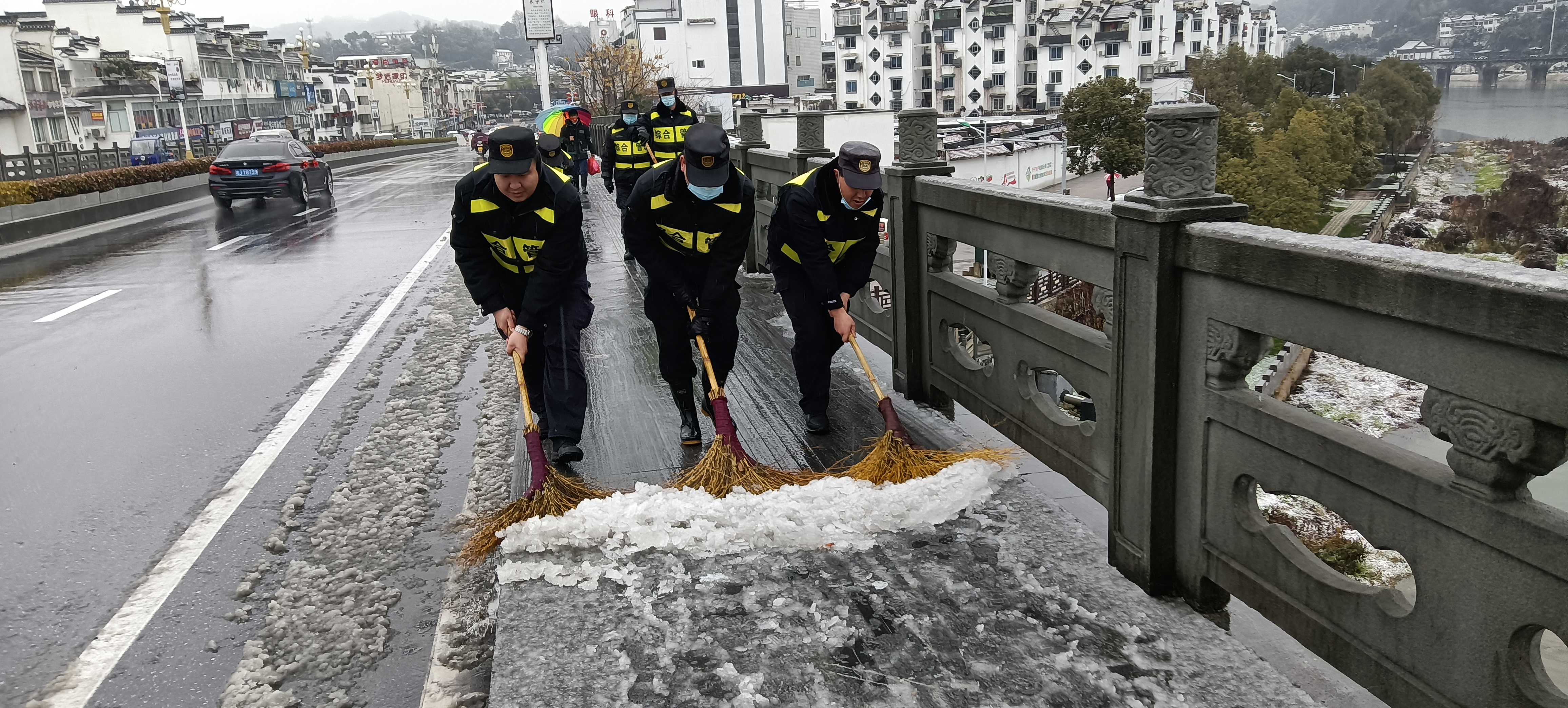 2022年2月7日,歙縣迎來(lái)大雪,路面迅速積雪,白茫茫一片。雪情就是命令,公司駐歙縣市容項(xiàng)目在縣城管執(zhí)法局的帶領(lǐng)下,聞令而動(dòng),全力協(xié)助做好除雪融冰清掃等工作,保障了市民的出行安全。