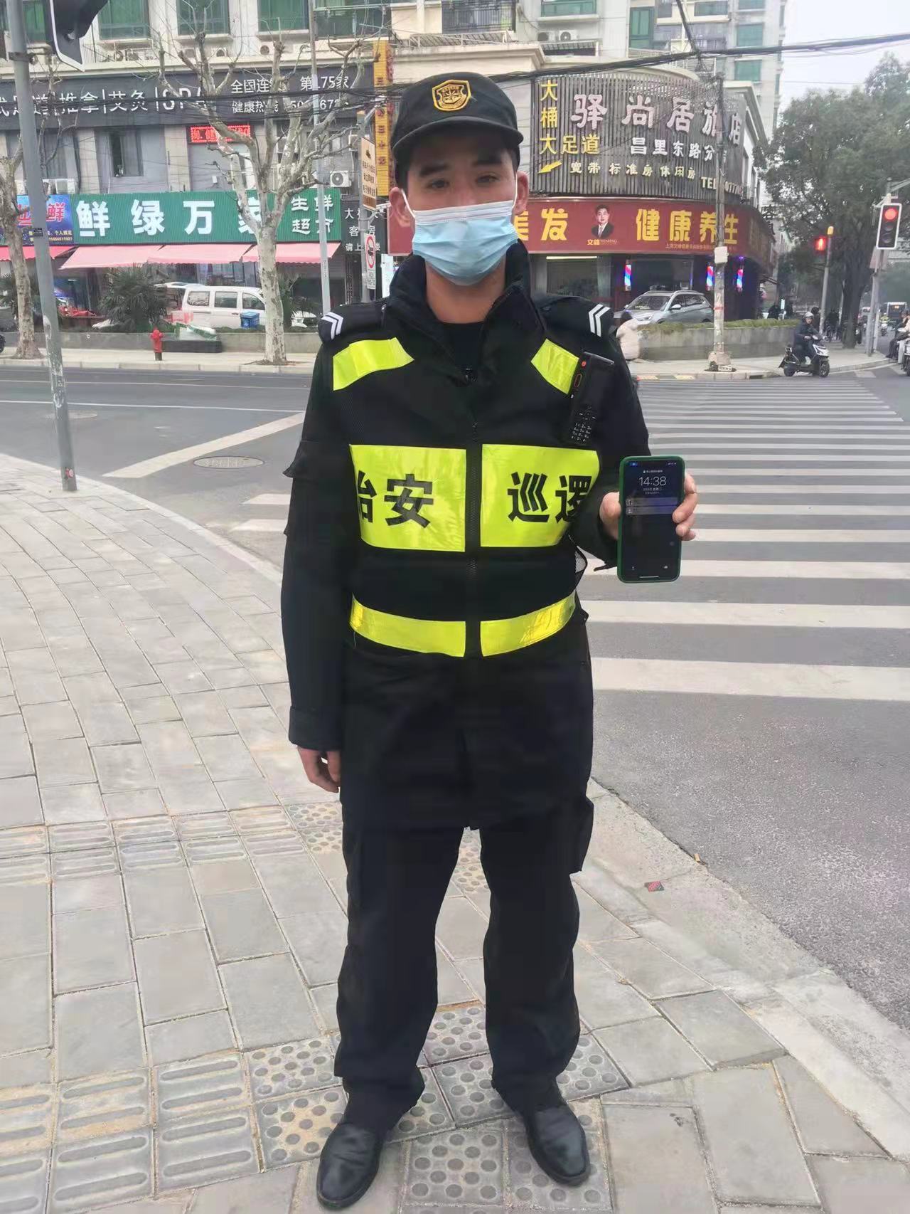 當(dāng)日14:26,范梁華在浦三路高科西路巡邏時(shí),撿到一部蘋果13手機(jī),他立即聯(lián)系了項(xiàng)目負(fù)責(zé)人,同時(shí)將情況向南碼頭路派出所警務(wù)值班室報(bào)告,并在原地等失主。