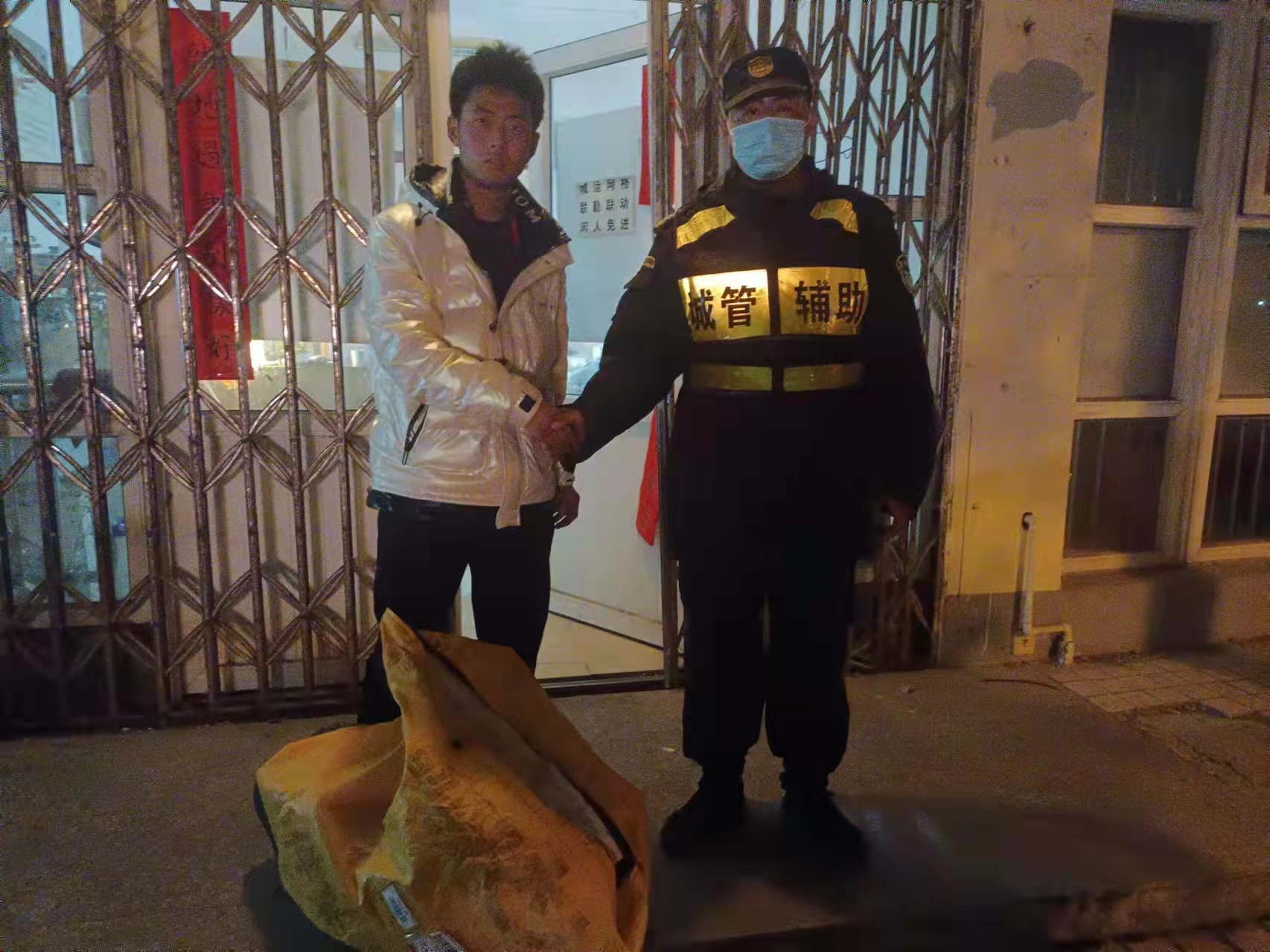 3月9日18:30,徐東陽在御霞路草和谷生鮮集市門口巡邏時,發(fā)現(xiàn)有一袋物品掉落在路中間,便立即上前查看,原來是一袋中通快遞包裹。徐東陽立即將情況上報隊長,并按指示在原地等待。