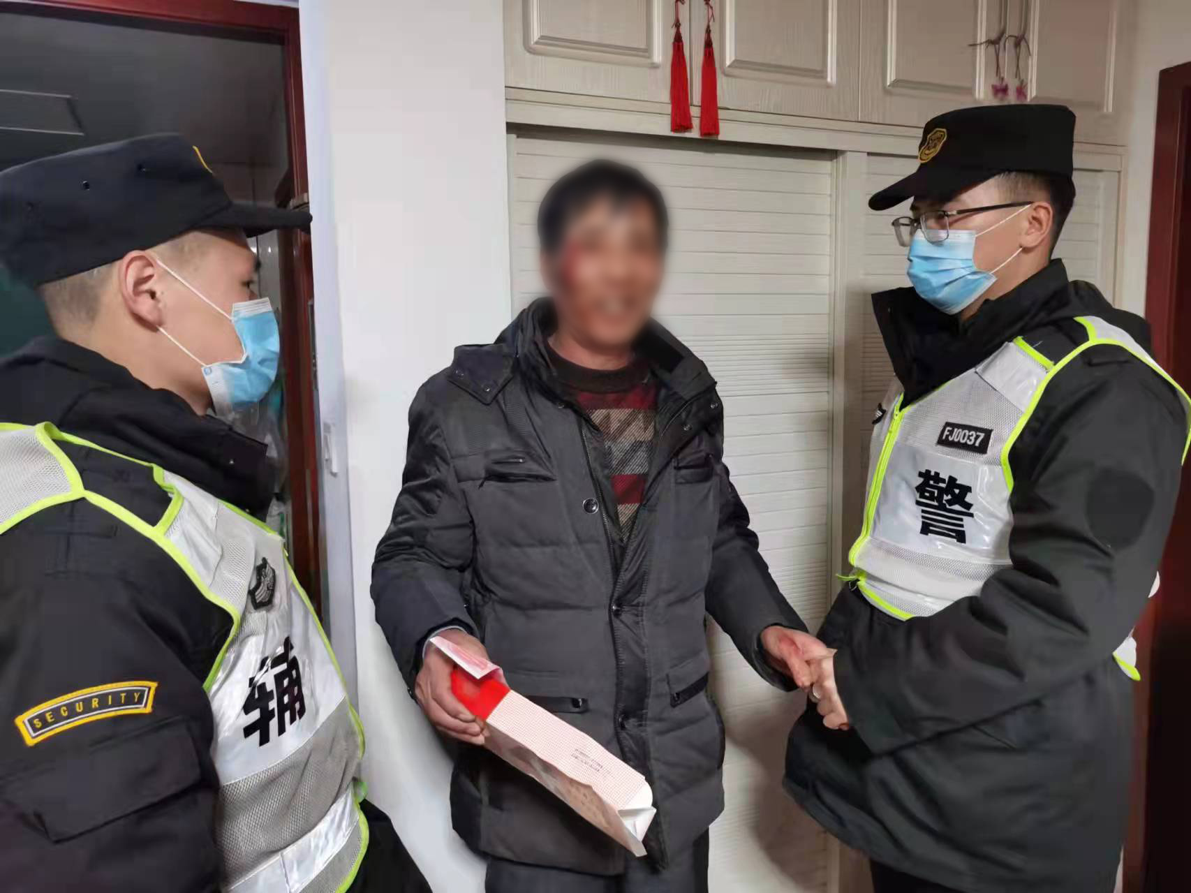 3月12日,宗保公司駐孫橋輔警項目隊員幫助摔傷老人回家。