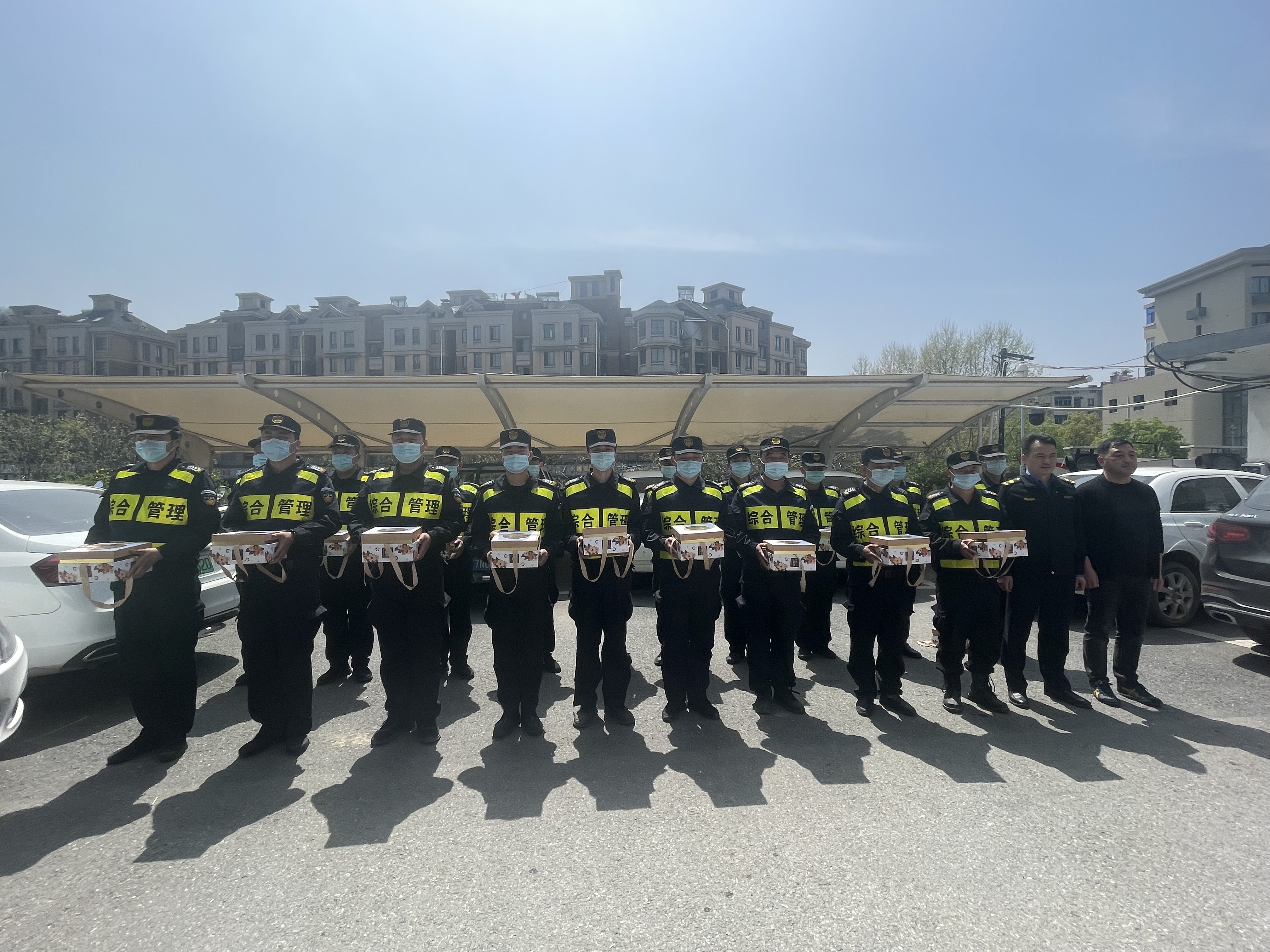 3月28日,中泰街道辦事處副主任徐攀峰、城管中隊中隊長黃斌送來慰問品慰問民泰隊員。
