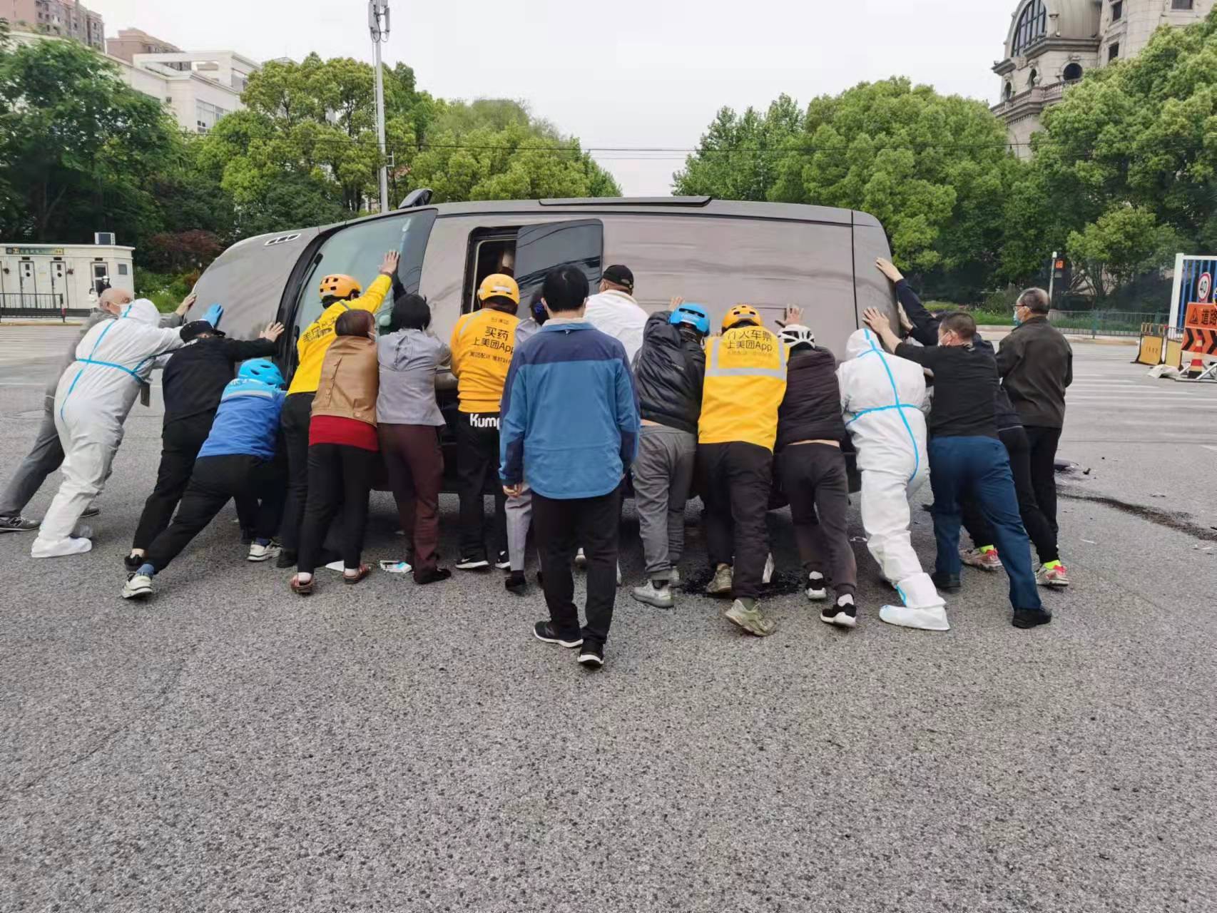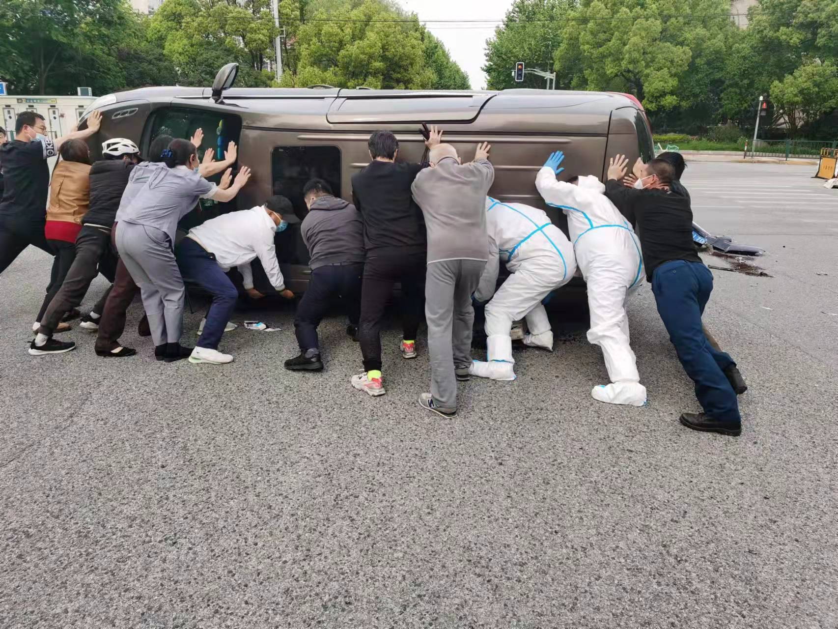 5月1日,宗保公司駐陸家嘴嶗山項(xiàng)目隊(duì)員路遇一起車輛側(cè)翻事故,協(xié)力將被困駕駛員救出。