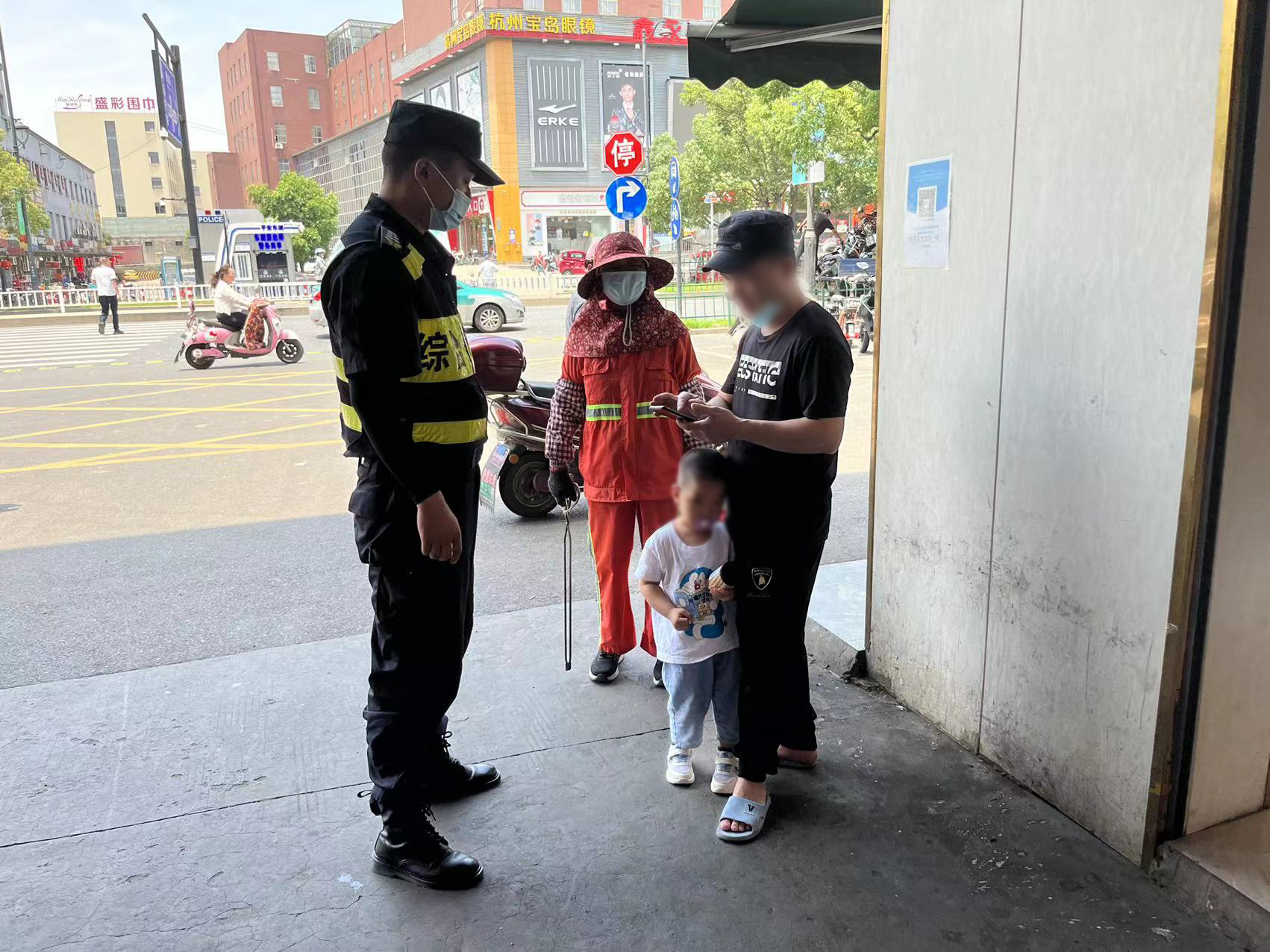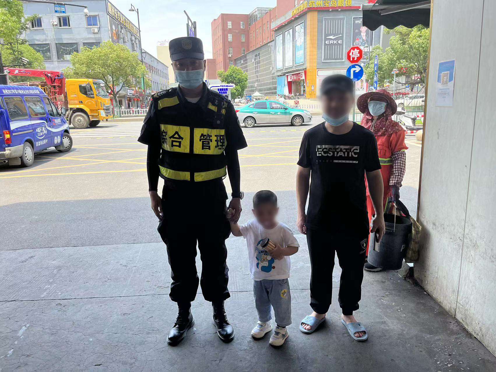 6月7日,浙江民泰駐運(yùn)河街道城管項(xiàng)目隊(duì)員幫助走散小男孩找到家人。