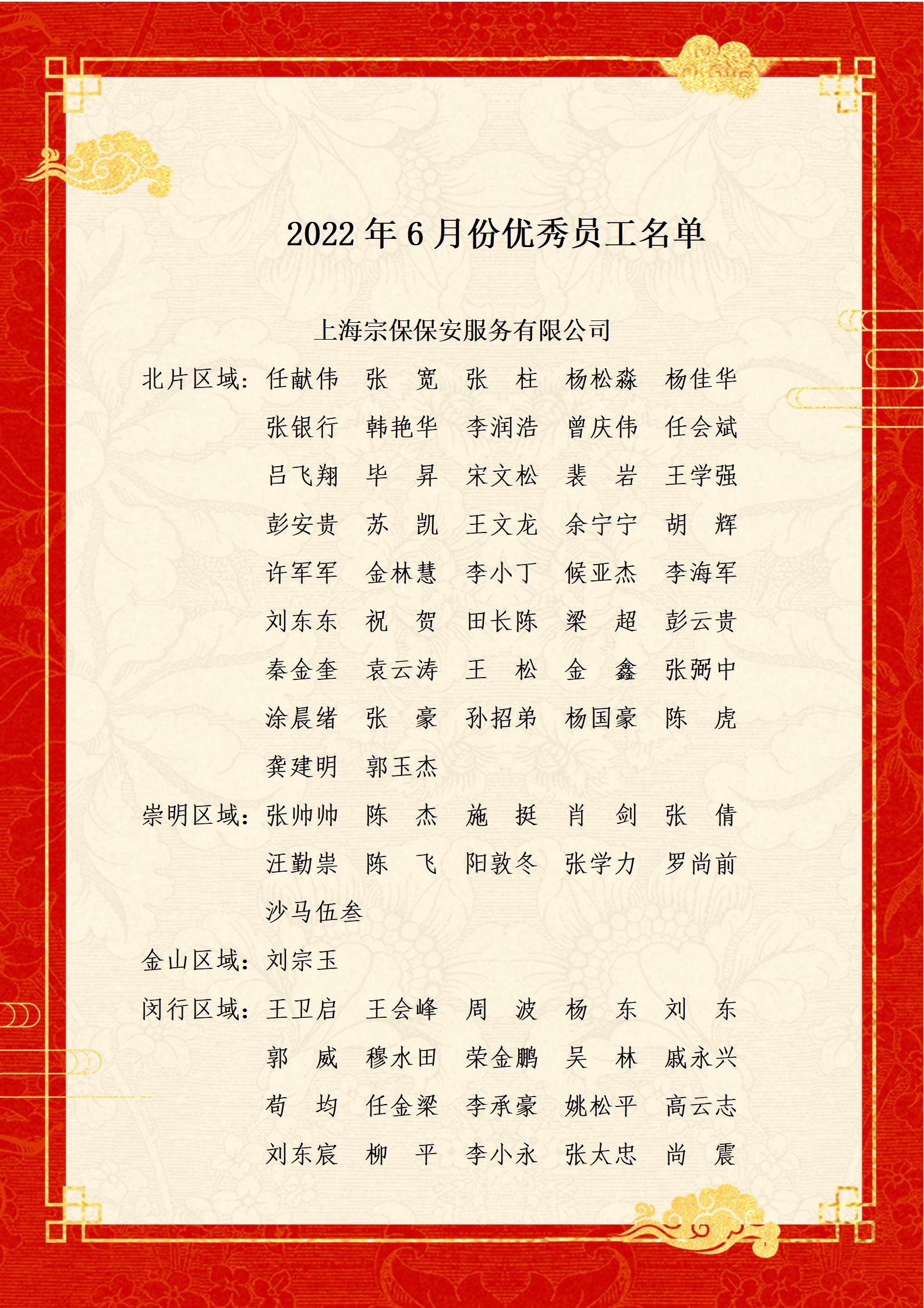 6月份,公司廣大員工根據(jù)甲方的工作部署,按照公司的工作要求,秉承不懼風險、勇毅前行,不辭辛苦、連續(xù)奮戰(zhàn)的工作作風,配合甲方持續(xù)做好疫情防控工作,鞏固疫情防控階段性勝利成果;協(xié)助完成臨港新片區(qū)重大項目集中開工儀式保障、南京華僑城歡樂谷新員工崗前培訓等任務,多個項目受到肯定和贊揚,多位員工獲得表彰和獎勵。期間,涌現(xiàn)出了一批盡心履責、崗位建功、拾金不昧、助人為樂的優(yōu)秀員工和先進典型。