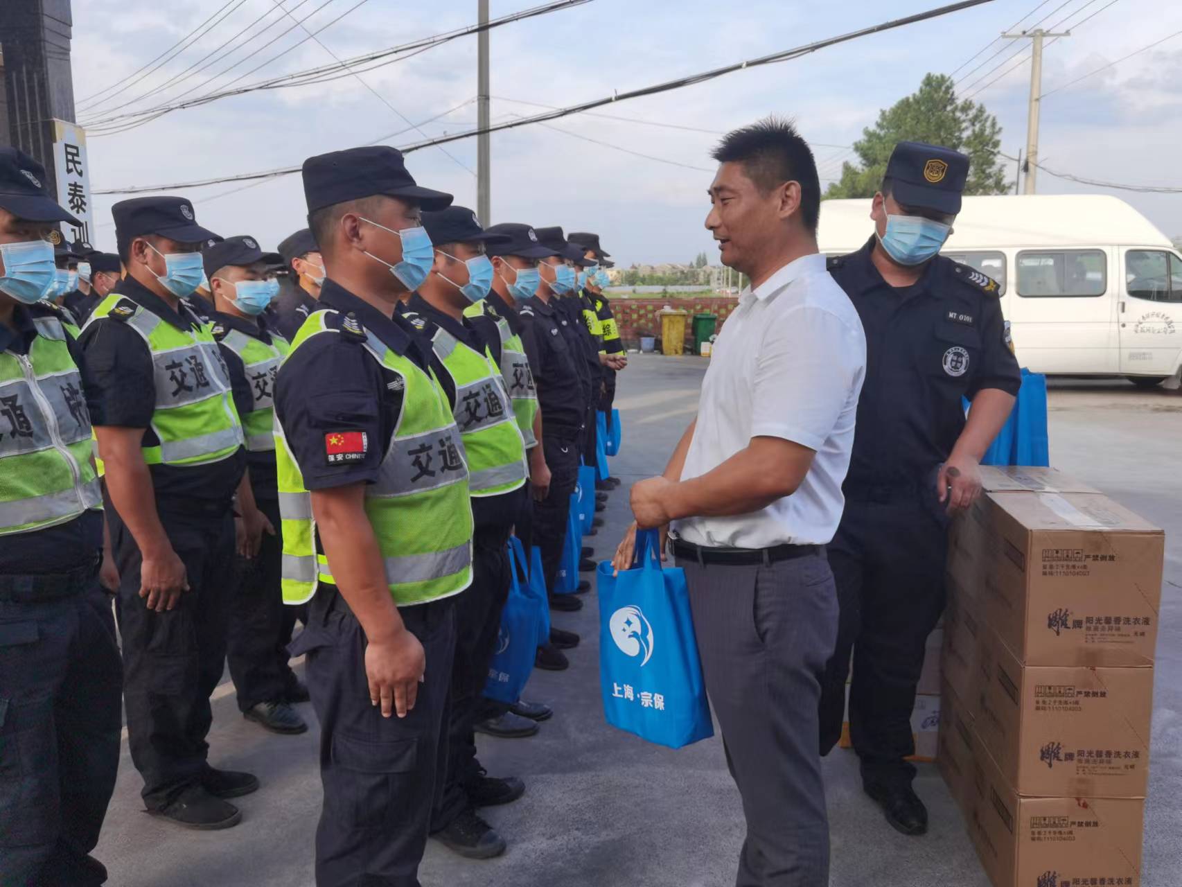 近日,為表達(dá)公司對(duì)全體員工的關(guān)心和愛護(hù),公司董事長、總經(jīng)理和各位副總經(jīng)理帶著真摯的問候,載著清涼的用品,分赴公司各區(qū)域,來到公司各項(xiàng)目,看望慰問員工,為員工們送上洗發(fā)水、沐浴露、洗衣液等防暑降溫物品。