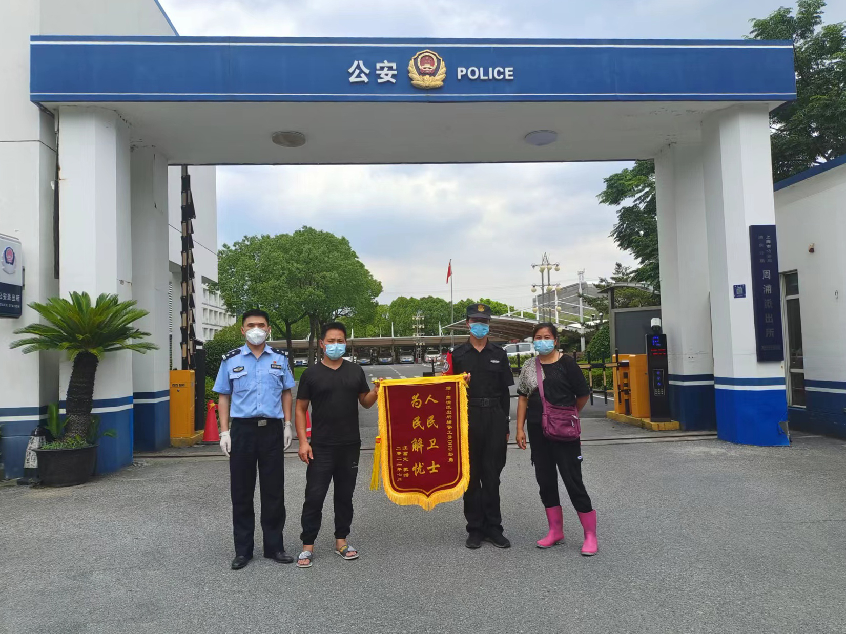 7月16日,宗保公司駐周浦派出所輔警項(xiàng)目隊(duì)員彭勇收到市民汪女士贈(zèng)送的一面繡有“人民衛(wèi)士 為民解憂”的錦旗,感謝他熱心助人的行為。