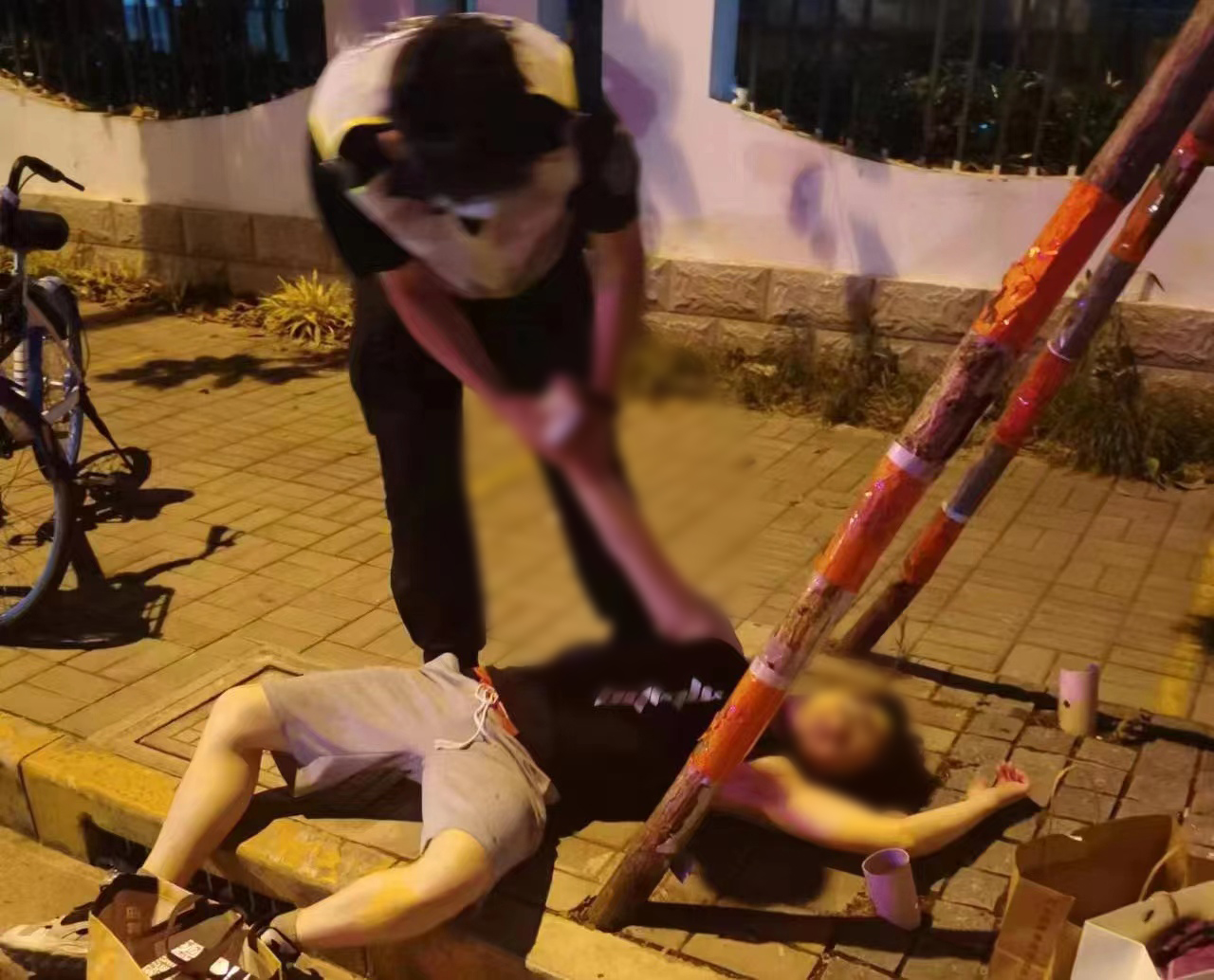 當(dāng)日凌晨1:00,張林航和韓增輝駕駛電動(dòng)車巡邏至沈梅東路瑞陽(yáng)路口時(shí),發(fā)現(xiàn)一名男子躺在路邊地上,便趕緊上前察看。