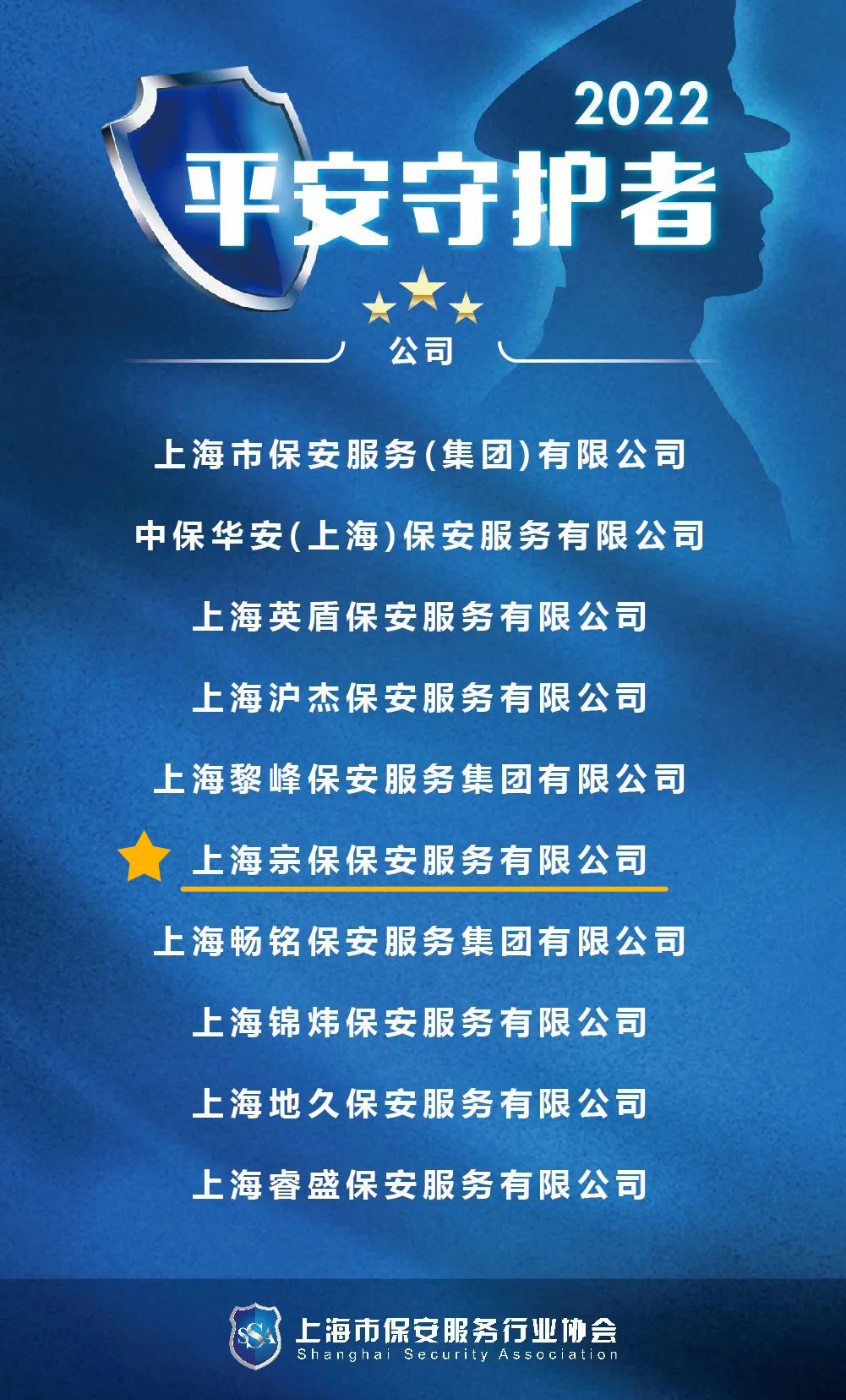 上海宗保保安服務(wù)有限公司被評(píng)為“平安守護(hù)者”